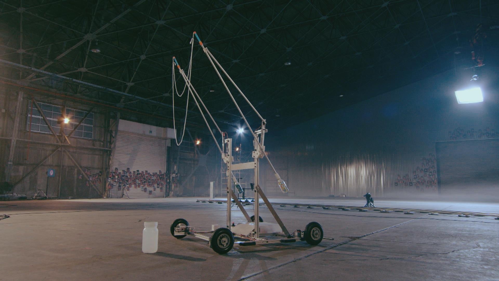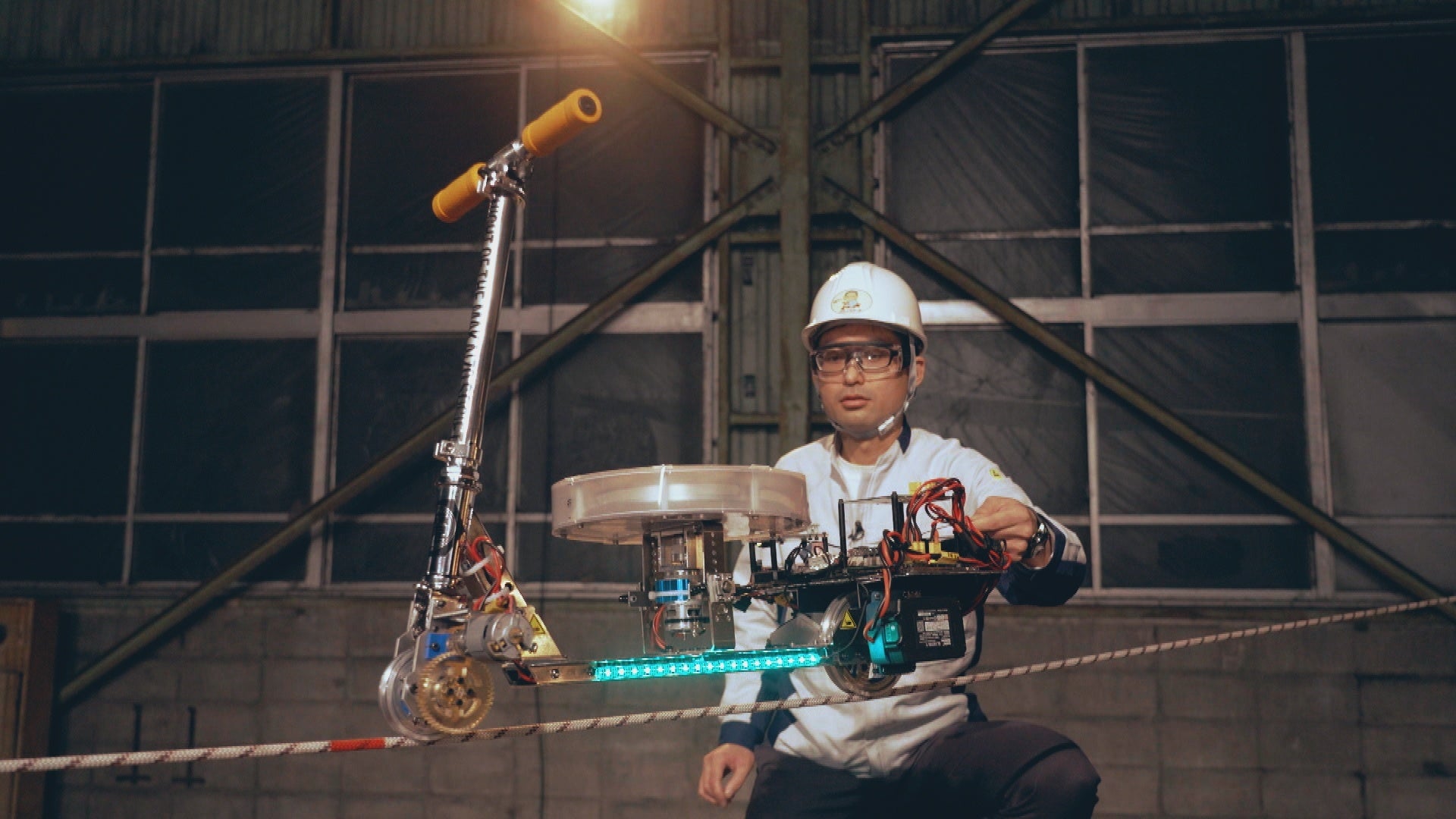 “脚立”が25mを爆走する! “キックスケーター“が自立して綱渡り!