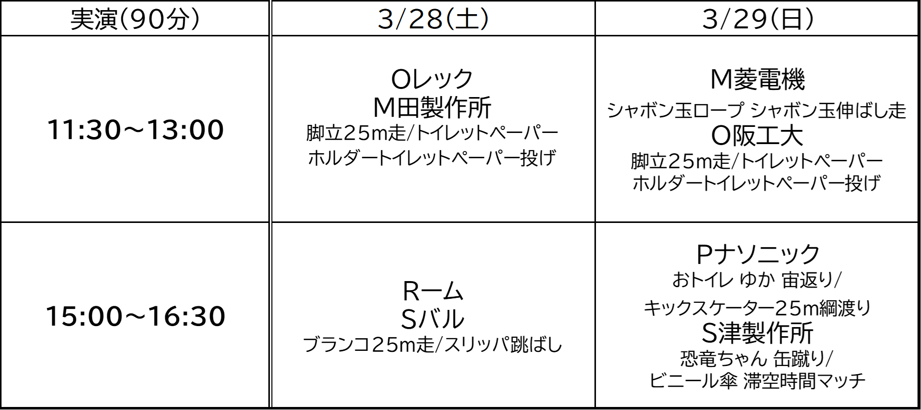 両日共(90分)①11:30~13:00/②15:00~16:30