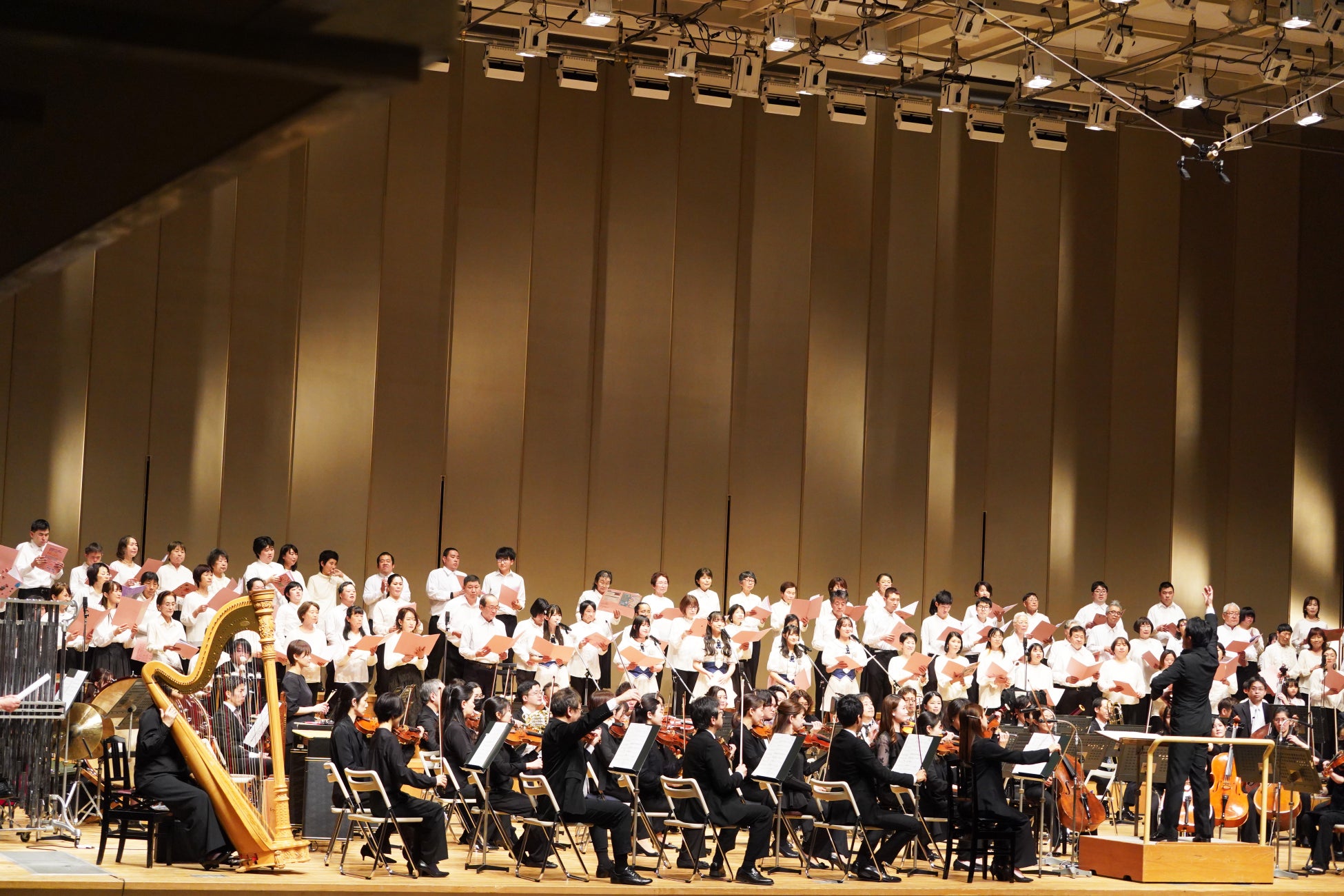 力強い和太鼓の演奏、心温まる合唱と手話による歌、そして広島交響楽団の迫力あるオーケストラ・サウンドが織りなす、感動的なジョイントコンサートとなった。