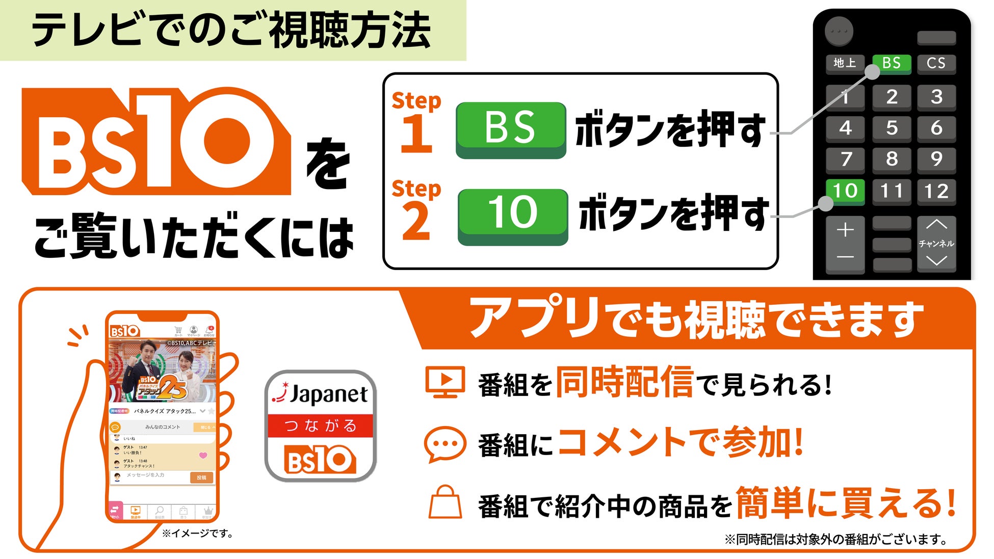 無料放送(BS10)、公式アプリ「つながるジャパネット」での同時配信あり