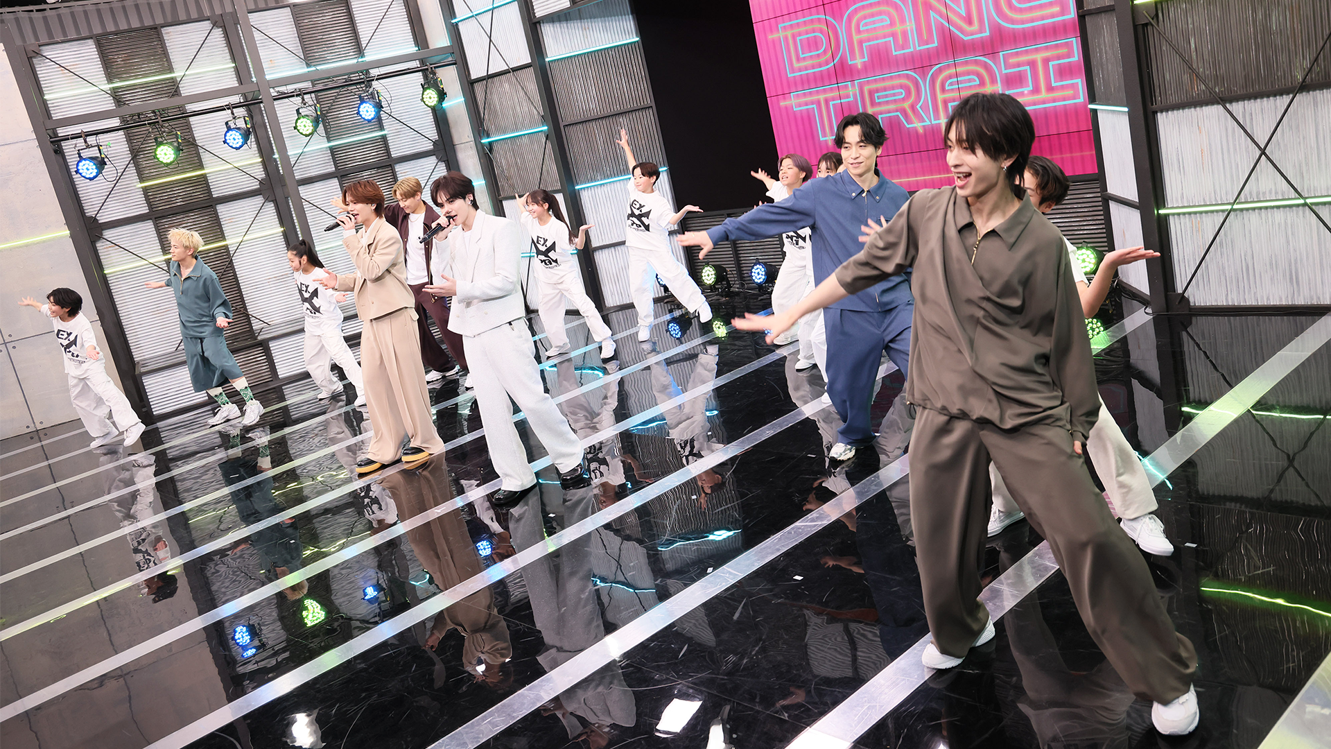 ダンスレッスンを行うEXILE B HAPPYは、EXILE TETSUYAをリーダーとして、ヴォーカルに吉野北人(THE RAMPAGE)、中島颯太(FANTASTICS)、パフォーマーに小森隼(GENERATIONS)、浦川翔平(THE RAMPAGE)、木村慧人(FANTASTICS)が、EXILE TRIBEから集結。生徒には、芸能事務所に所属する62歳~77歳までのシニア6名に集まっていただきました。当時、ディスコで踊り明かした方たちに自宅でも手ごろにできるダンスを分かりやすくEXILE B HAPPYのメンバーがお届け!初回はEXILEの名曲「Choo Choo TRAIN」、「WON’T BE LONG」に合わせて、EXILE TETSUYAオリジナルの振り付けで考案したダンスレッスンにチャレンジ。シニアだけでなく、親子3世代で一緒に楽しめる内容になっています。さらにEXILE B HAPPYのグループ代表曲『MORNING SUN』を披露します!