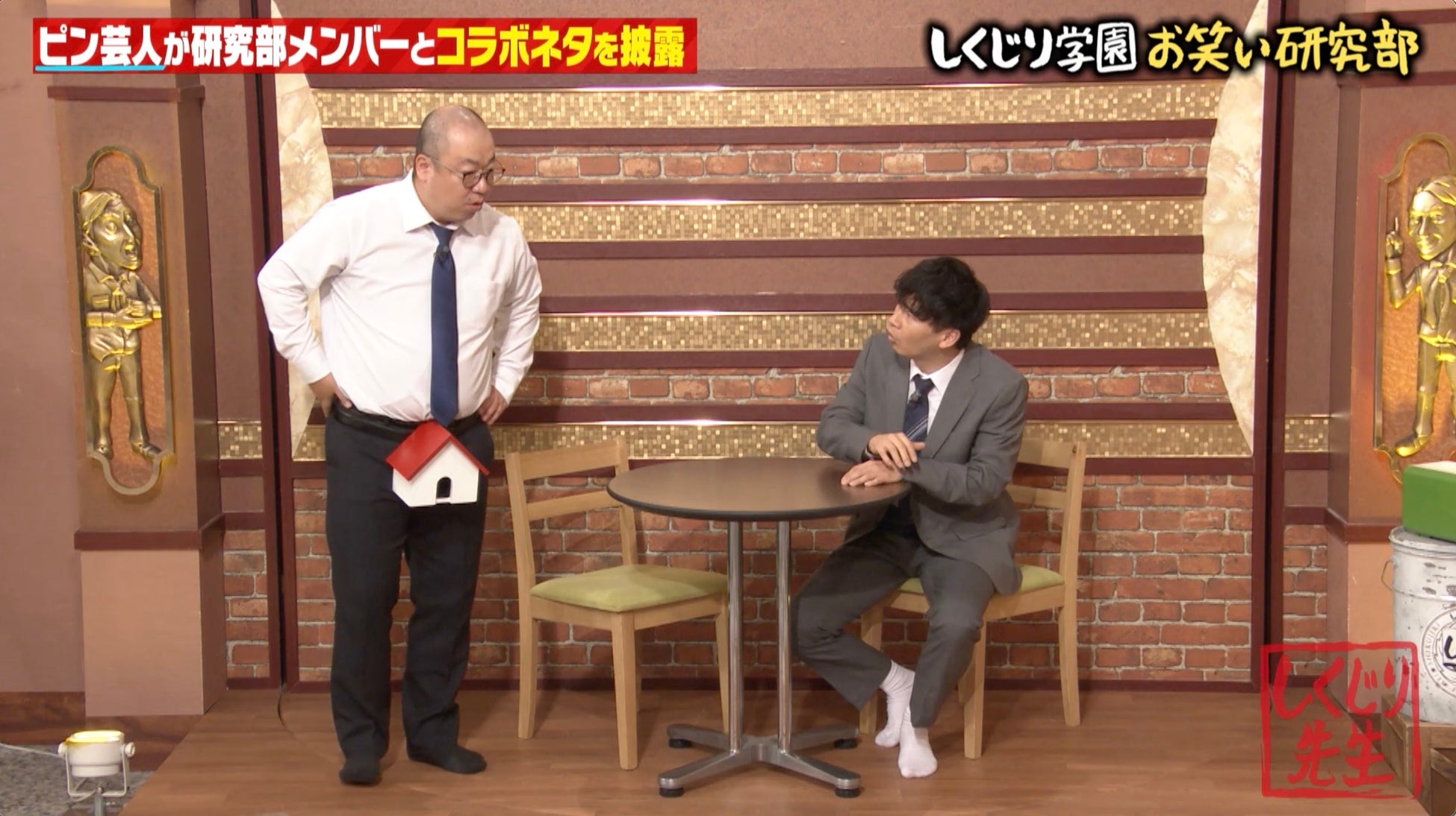 そして、トリを飾ったのは若林&ルシファー吉岡。若林が友人宅を訪れるというコントでは、友人役のルシファー吉岡が下半身に“鳥の巣箱”をつけているという衝撃のスタートで早くも笑いが広がります。その後、「“息子”に家を買ってやった」と説明するルシファー吉岡に、若林が次々と疑問とぶつけていきますが…。ルシファー吉岡の偏執的な論理と、若林の冷静な返しが絶妙に絡み合い、研究部メンバーからは「魅せるね」「見事な二人芝居」「ルシファー吉岡の世界観に安心が加わった」などの声が続出。福留も「打ち合わせ20分でこのテンポ感・間がすごい。コンビ組んだ方がいい」と絶賛しました。