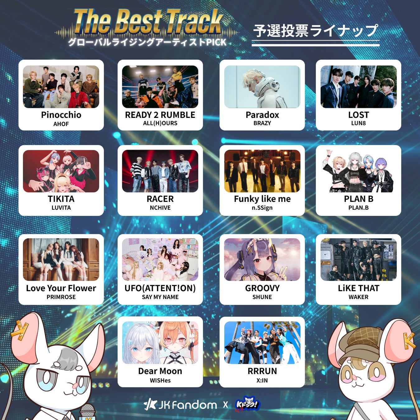 株式会社ファンコミュニケーションズ・グローバルが展開するグローバルファンダム応援プラットフォーム「JK Fandom(ジェイケイファンダム)」は、ファンの応援を形にする企画として、株式会社ディー・エル・イーと朝日放送テレビが共同で制作・発信する韓国カルチャー番組『Kドック!』とコラボレーションし、1月24日(土)から番組連動のオンライン投票企画「グローバルライジングアーティストPICK:The Best Track」を実施しています。