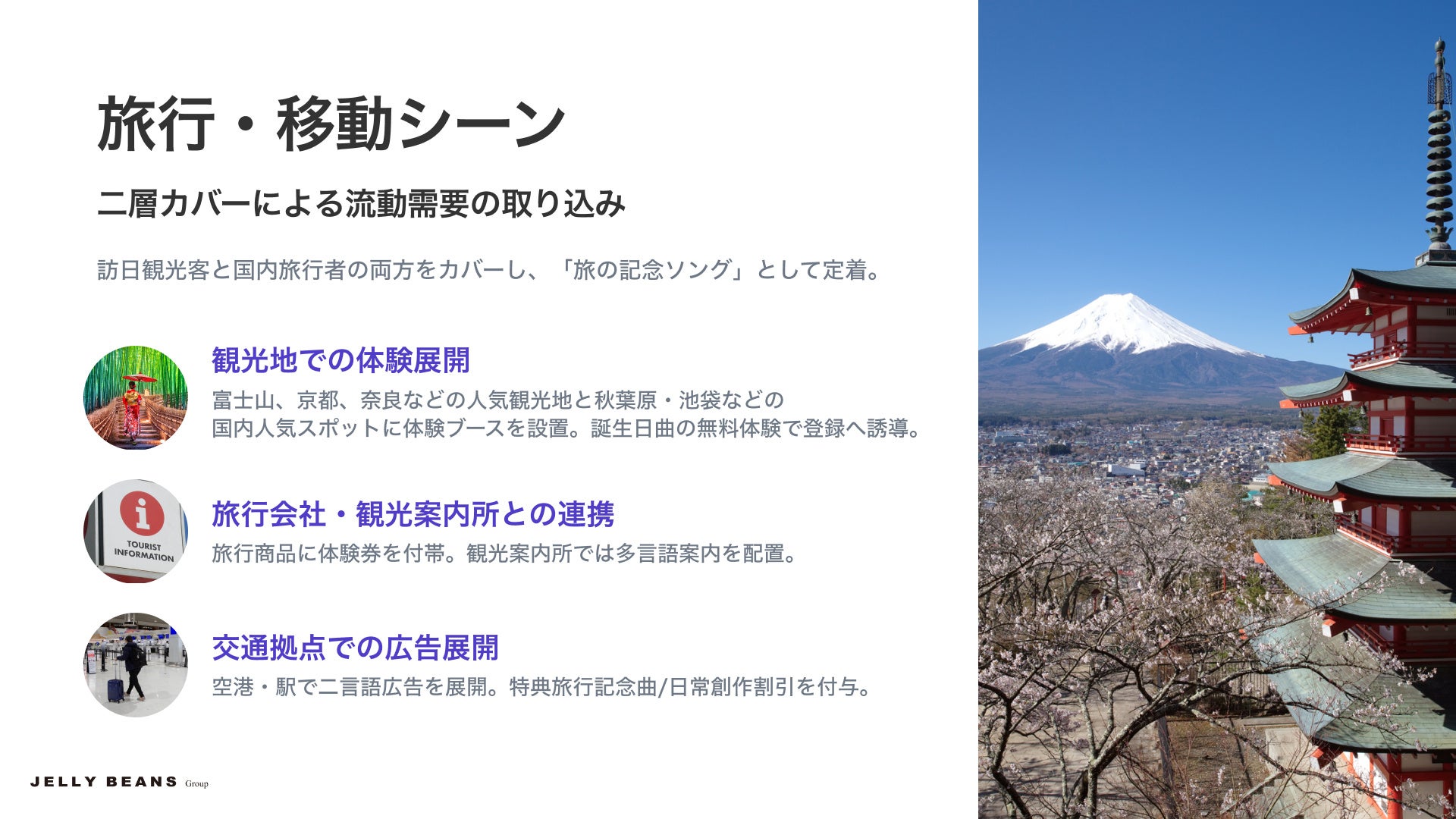 コンビニ・商業施設・コミュニティセンターに体験コーナーを設置。食事記録、家族団らん、記念日など日常シーンで楽曲生成サービスを提供。QRコード読み取りで登録後は誕生日曲の無料カスタマイズ権を付与。