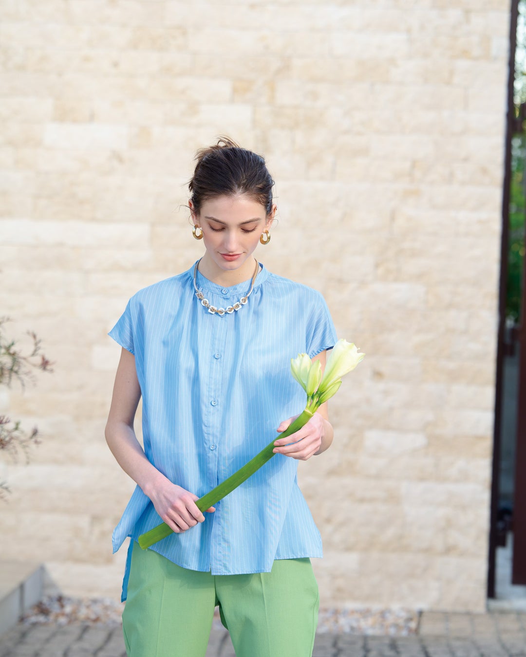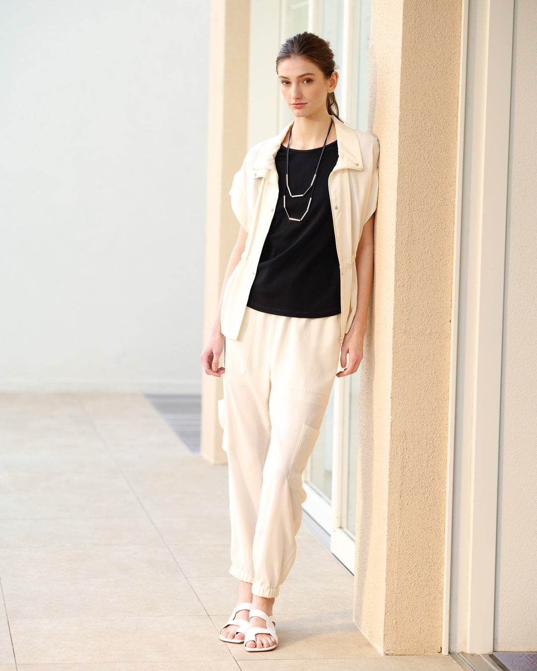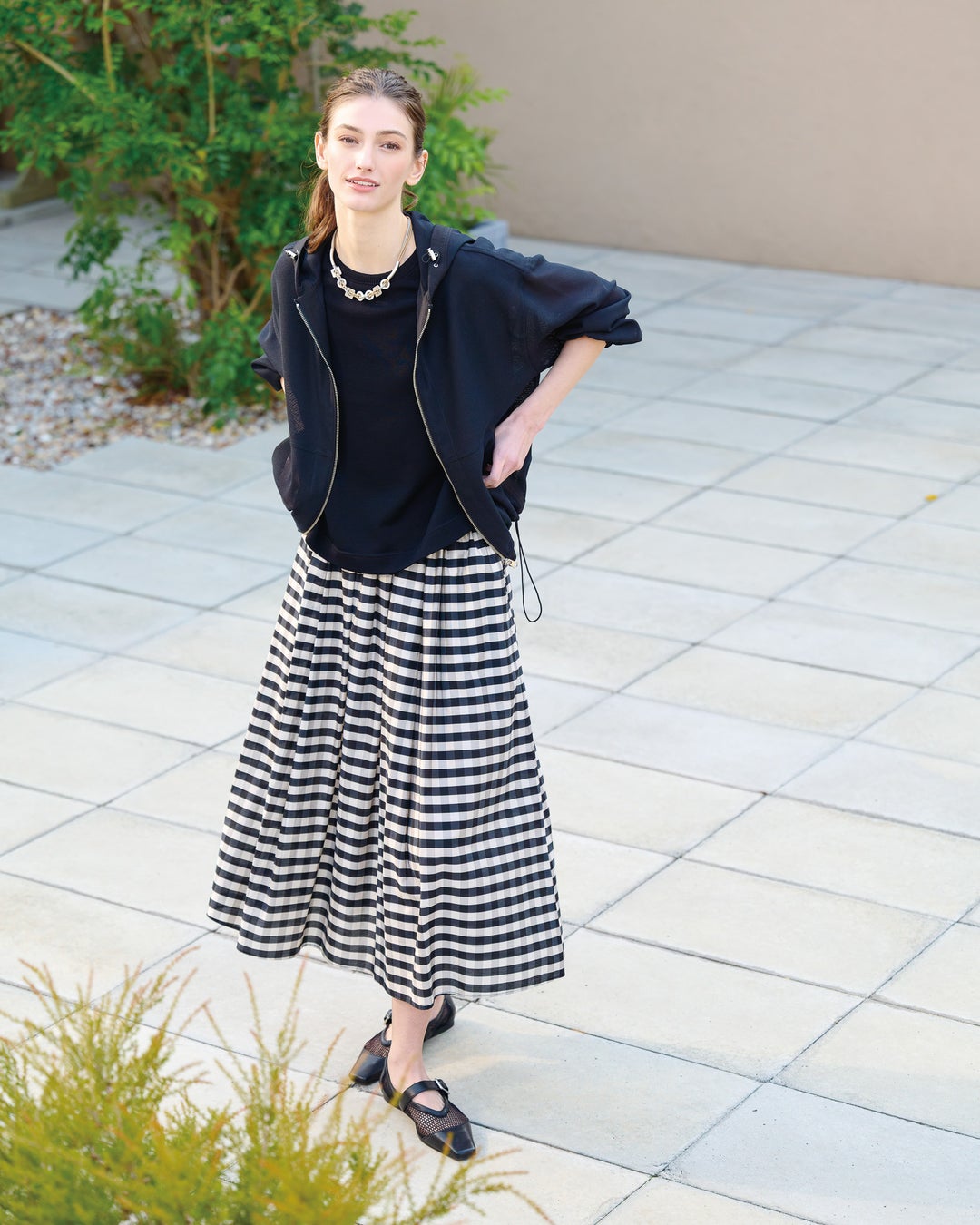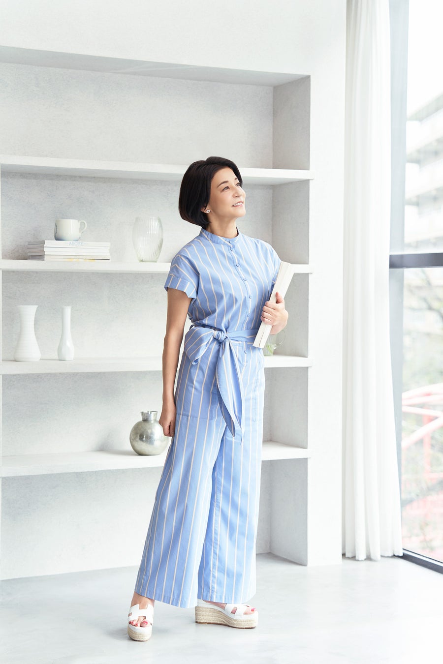 多忙な日々を送る彼女ならではの機能性への洞察も深く、膝が出にくいパンツやストレッチ素材、時代性を捉えたシルエットなど、その確かな審美眼はコレクションの随所に息づいています。