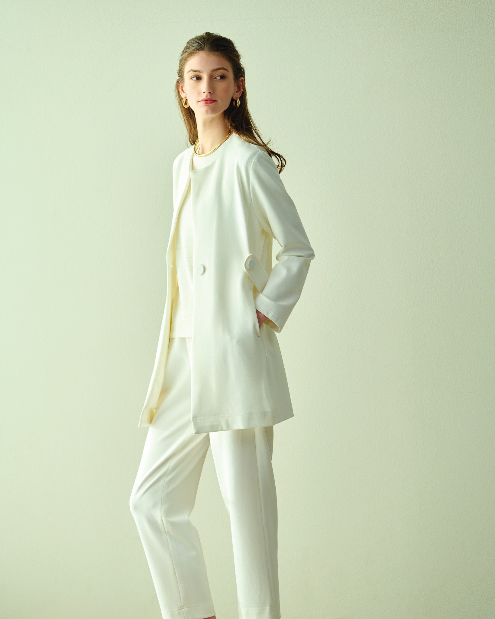 多忙な日々を送る彼女ならではの機能性への洞察も深く、膝が出にくいパンツやストレッチ素材、時代性を捉えたシルエットなど、その確かな審美眼はコレクションの随所に息づいています。