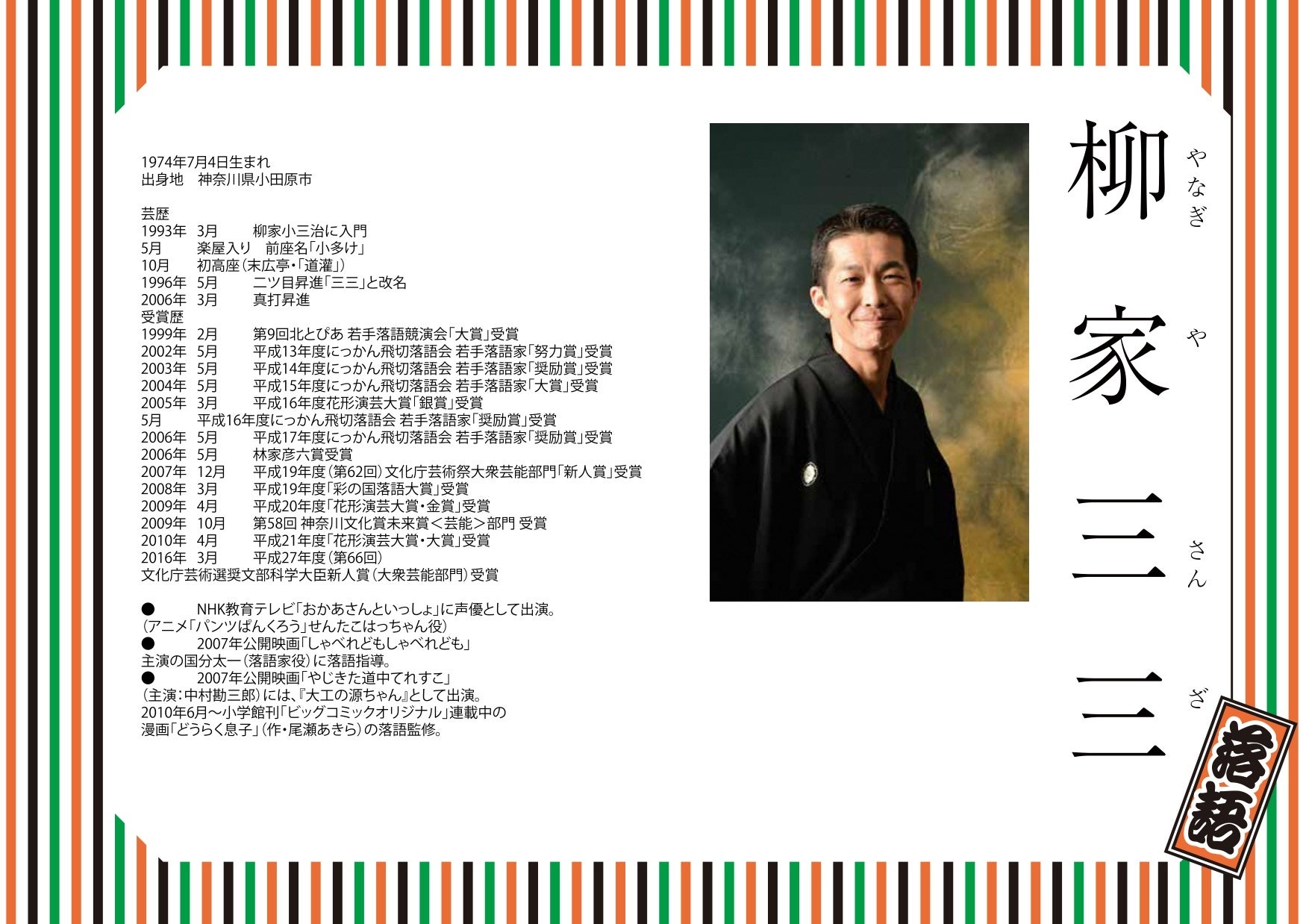 国立演芸場花形演芸会平成22年度金賞受賞。その他、テレビ・新聞他マスコミ登場多数。