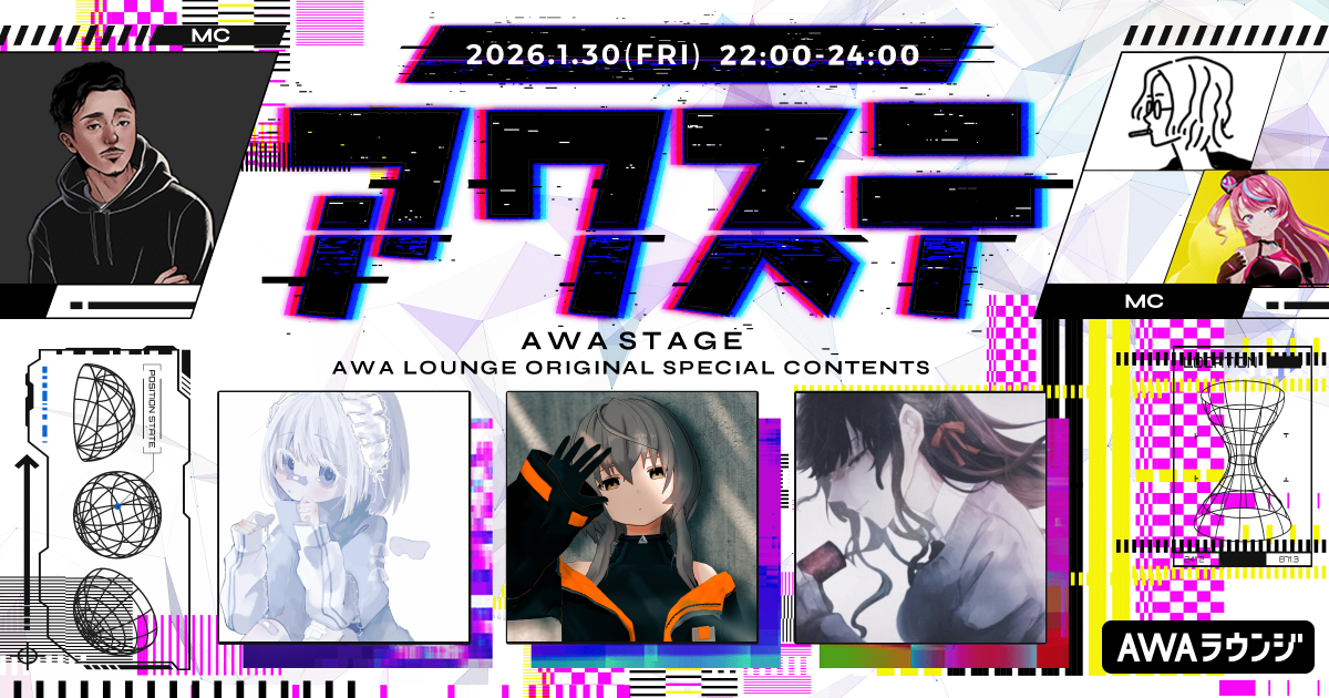 AWA株式会社(本社:東京都港区、代表取締役CEO:冨樫晃己)が運営する、サブスクリプション型(定額制)音楽ストリーミングサービス「AWA(アワ)」は、2026年1月30日(金) 22:00より、無料で誰でも参加できるオンライン空間「ラウンジ」で、ネットシーンを中心とした注目アーティストなどを毎回ゲストに招き、有識者であるMCとともにシーンの次のステージを切り開く番組「AWAステージ(通称:アワステ)」の第67回を開催いたします。