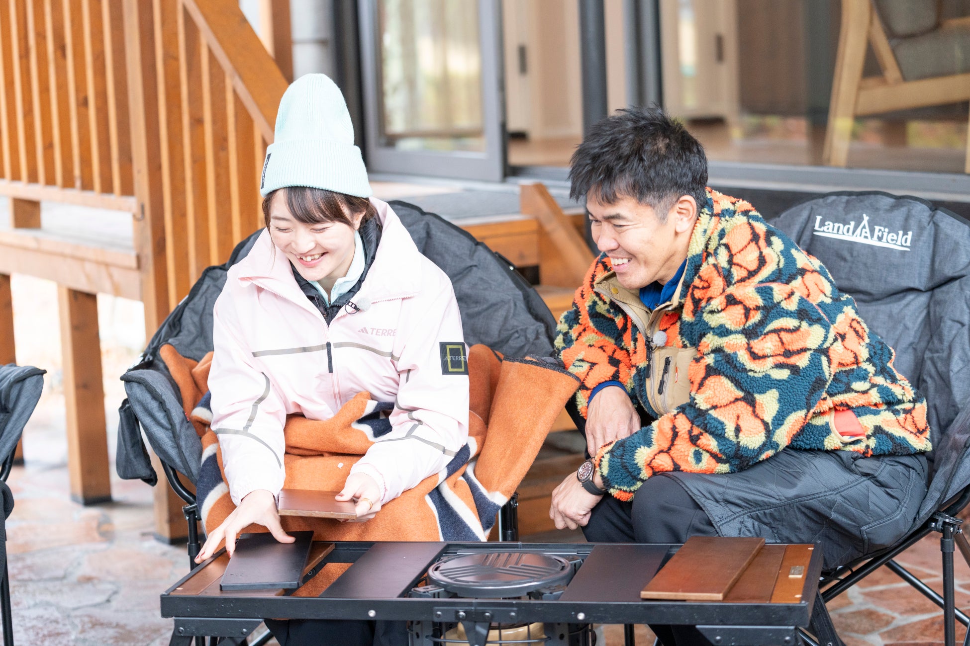 電源を入れると約10秒で座面が温まるチェアやストーブとドッキングするテーブルなど、今まで見たことないギアの数々に「すごーい!」「相当レベルが高い!」と感動する。