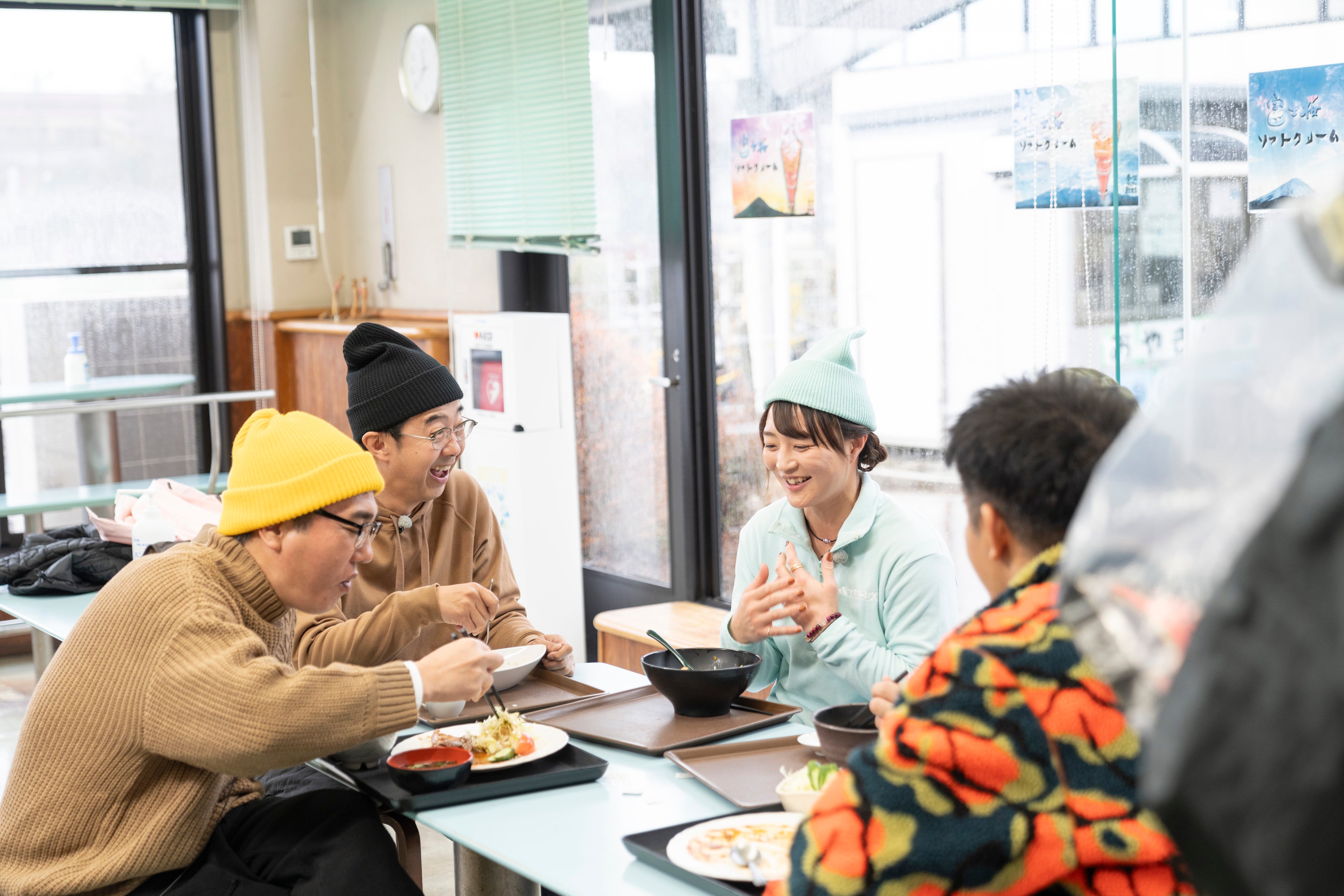急遽ランチタイムとなり、一行は「甲州牛カレー」や「信玄鶏の親子丼」など、山梨の絶品グルメを堪能することに。食事中は、おぎやはぎの二人が以前オリンピックの事前番組で共演した角田に興味津々。「減量がないときはかなり食べていた」「試合前は体脂肪率7%を切る」など、現場は柔道の裏話で大いに盛り上がった。