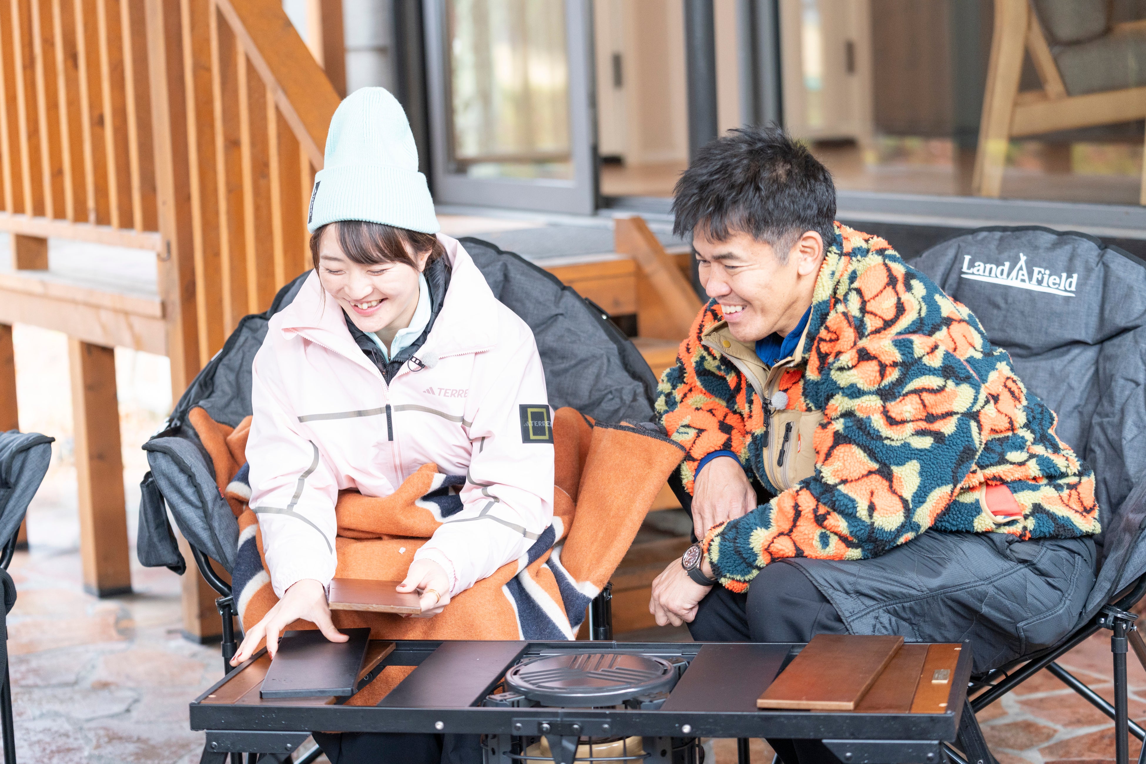 電源を入れると約10秒で座面が温まるチェアやストーブとドッキングするテーブルなど、今まで見たことないギアの数々に「すごーい!」「相当レベルが高い!」と感動する。