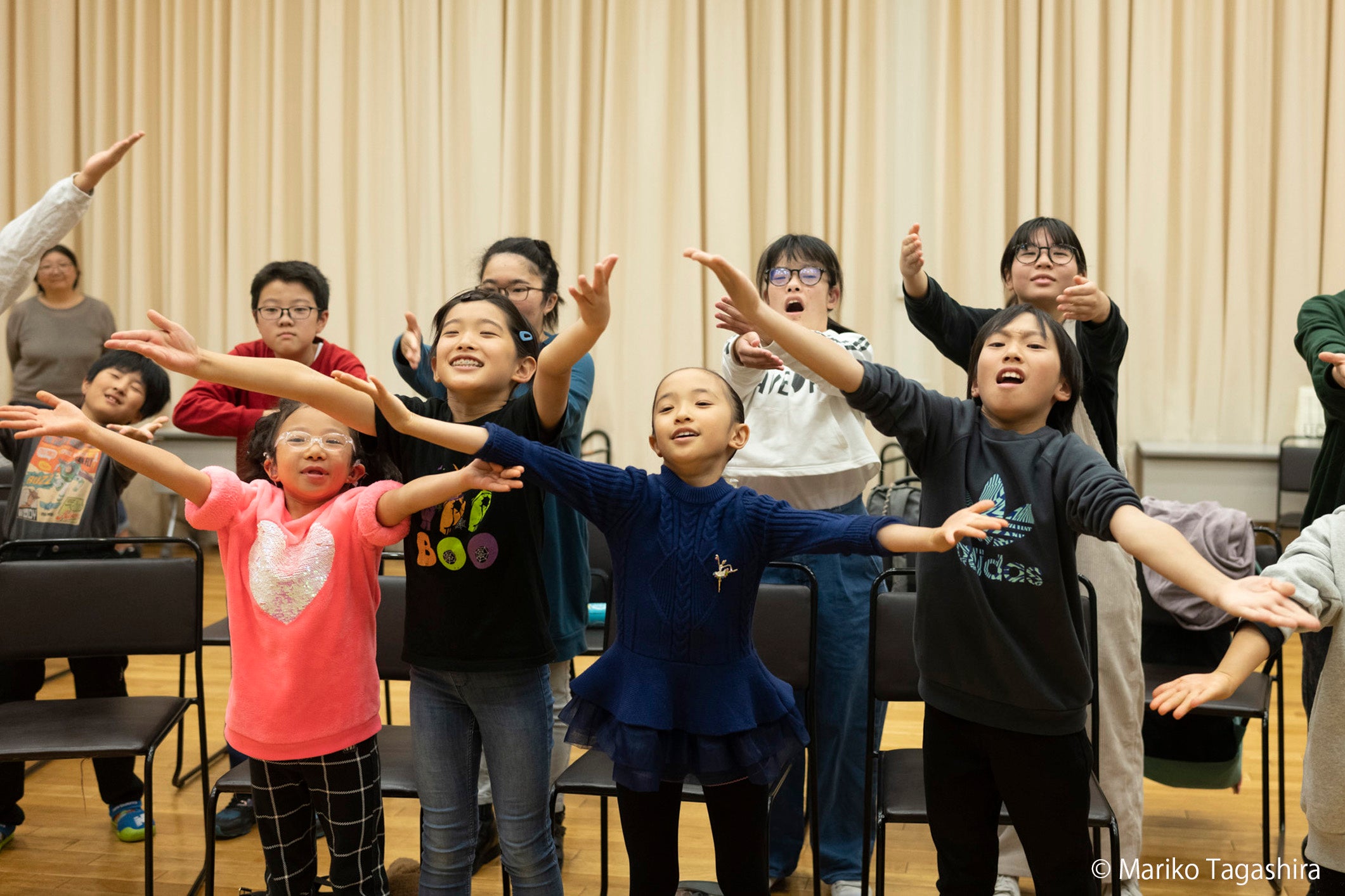 すべての子どもに開かれた、ろう者、難聴、全盲、弱視、車いすユーザーなどの多様なメンバーが所属するインクルーシブな合唱団です。南米ベネズエラで始まった、誰もが平等に音楽教育を受けることができる音楽の社会活動「エルシステマ」の理念に共感して2019年に設立。障がいの有無や経済的な状況に関わらず、誰もが無料で参加し、学ぶことができます。2020年に、東京では東京芸術劇場との共同主催事業として、京都では京都女子大学と連携協定を締結しました。手話の表現で歌う (手歌/しゅか)サイン隊と、声で歌う声隊がともに奏でる音楽は、可能性に溢れた未来世代の芸術創造です。