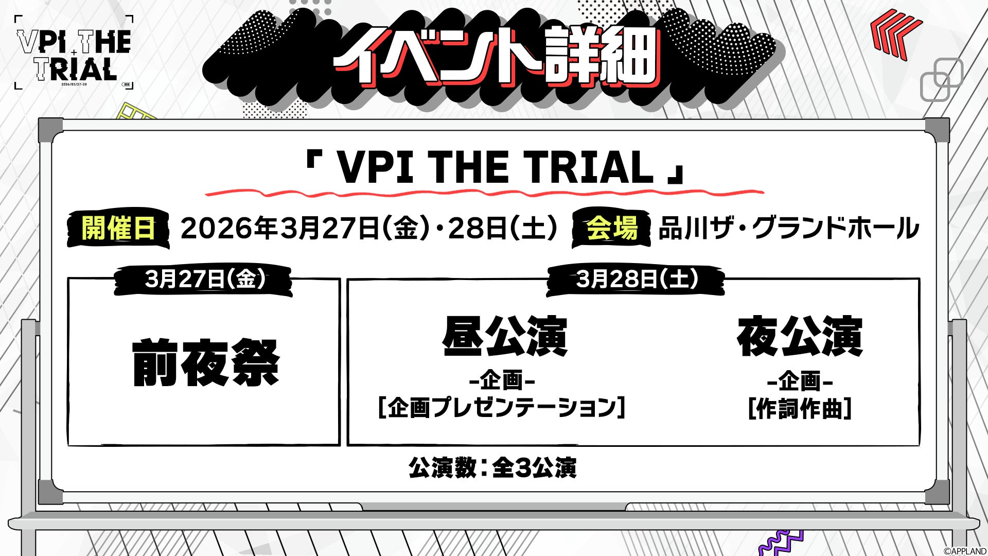 「ぶいぱい」らしさ全開でお届けする『VPI THE TRIAL(ぶいぱい ザ トライアル)』をぜひ会場でお楽しみください。