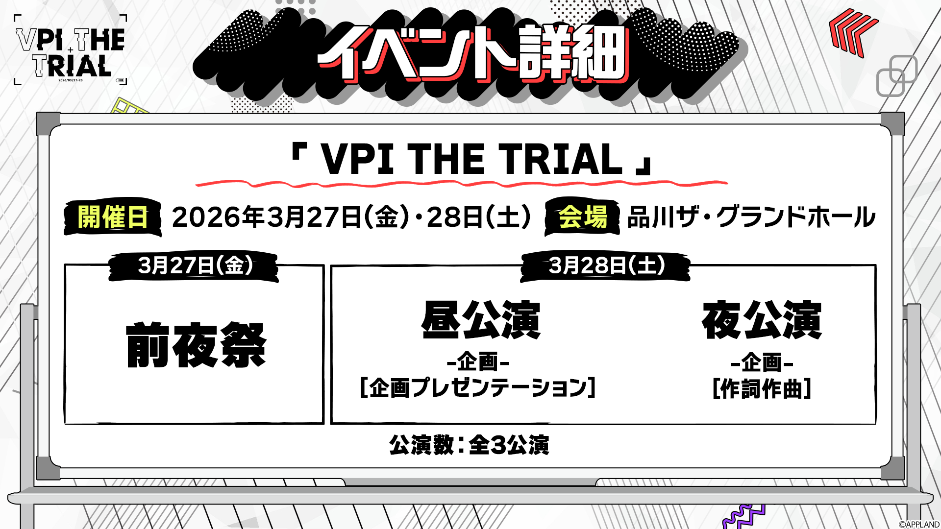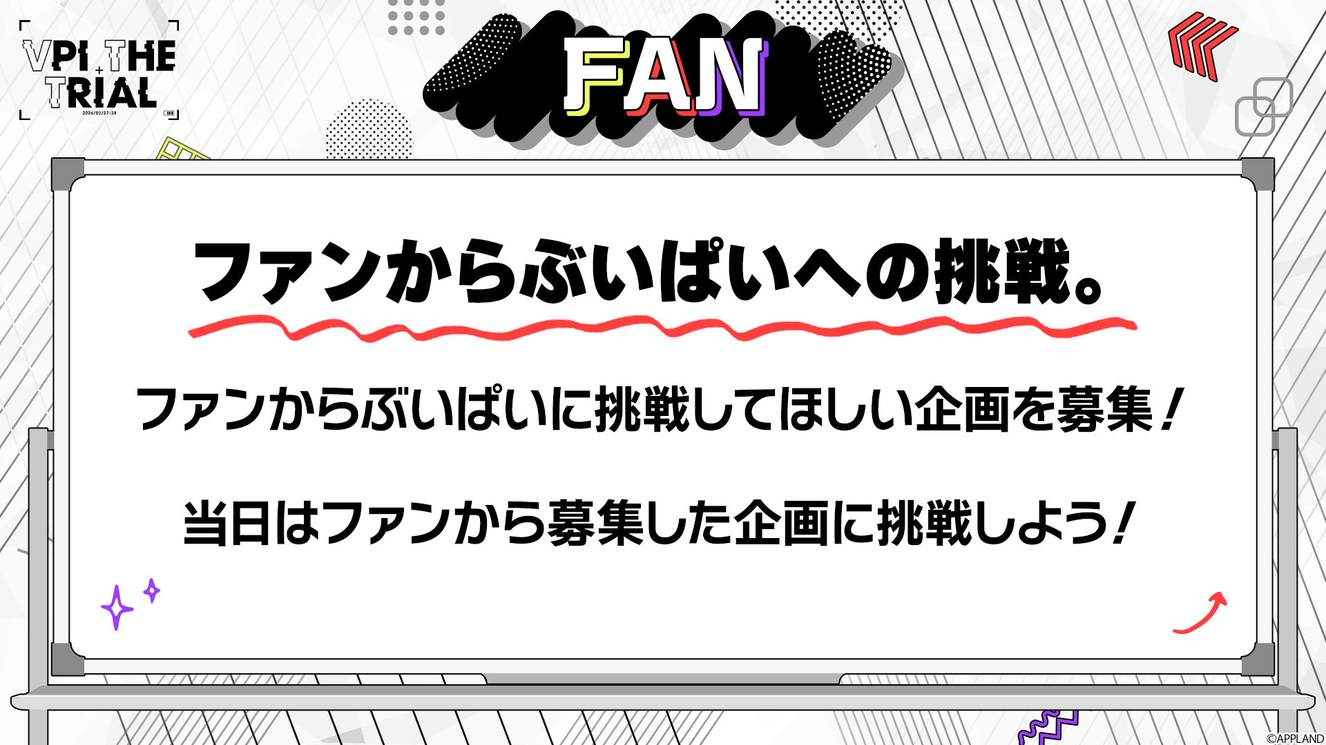 「ぶいぱい」らしさ全開でお届けする『VPI THE TRIAL(ぶいぱい ザ トライアル)』をぜひ会場でお楽しみください。