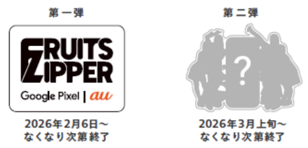 2026年2月6日(金)から全国のau Style/auショップへご来店いただき、 Google Pixel 10 シリーズの Gemini でアプリの画像生成機能を体験いただくと、au限定オリジナルFRUITS ZIPPERのステッカーをお渡しします。是非お近くのau Style/auショップへお越しください。