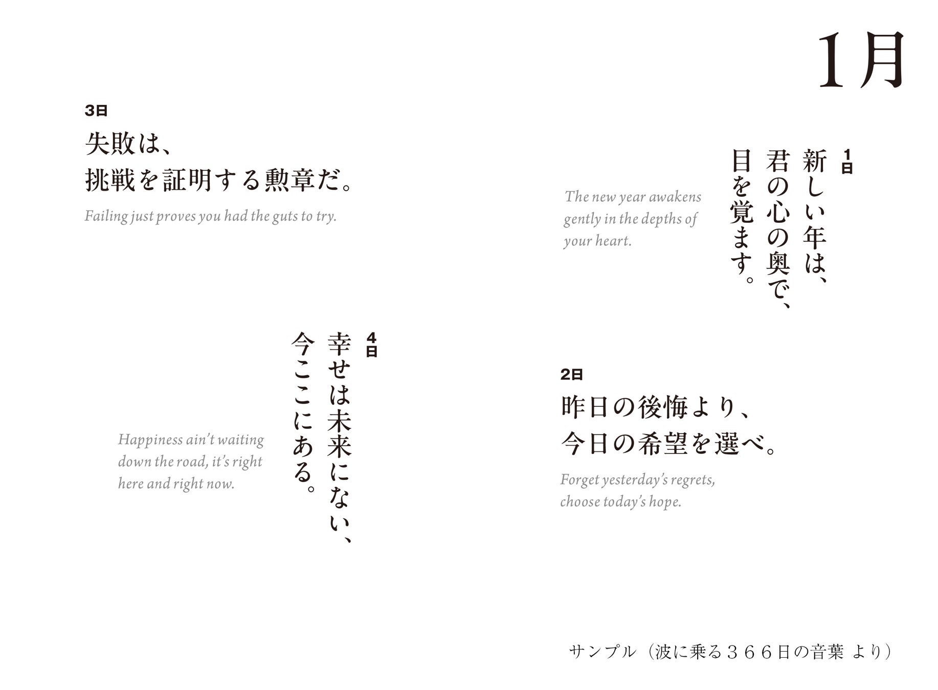 後半には、「365日+1日分の言葉」として、366日分の励ましの言葉を収録。