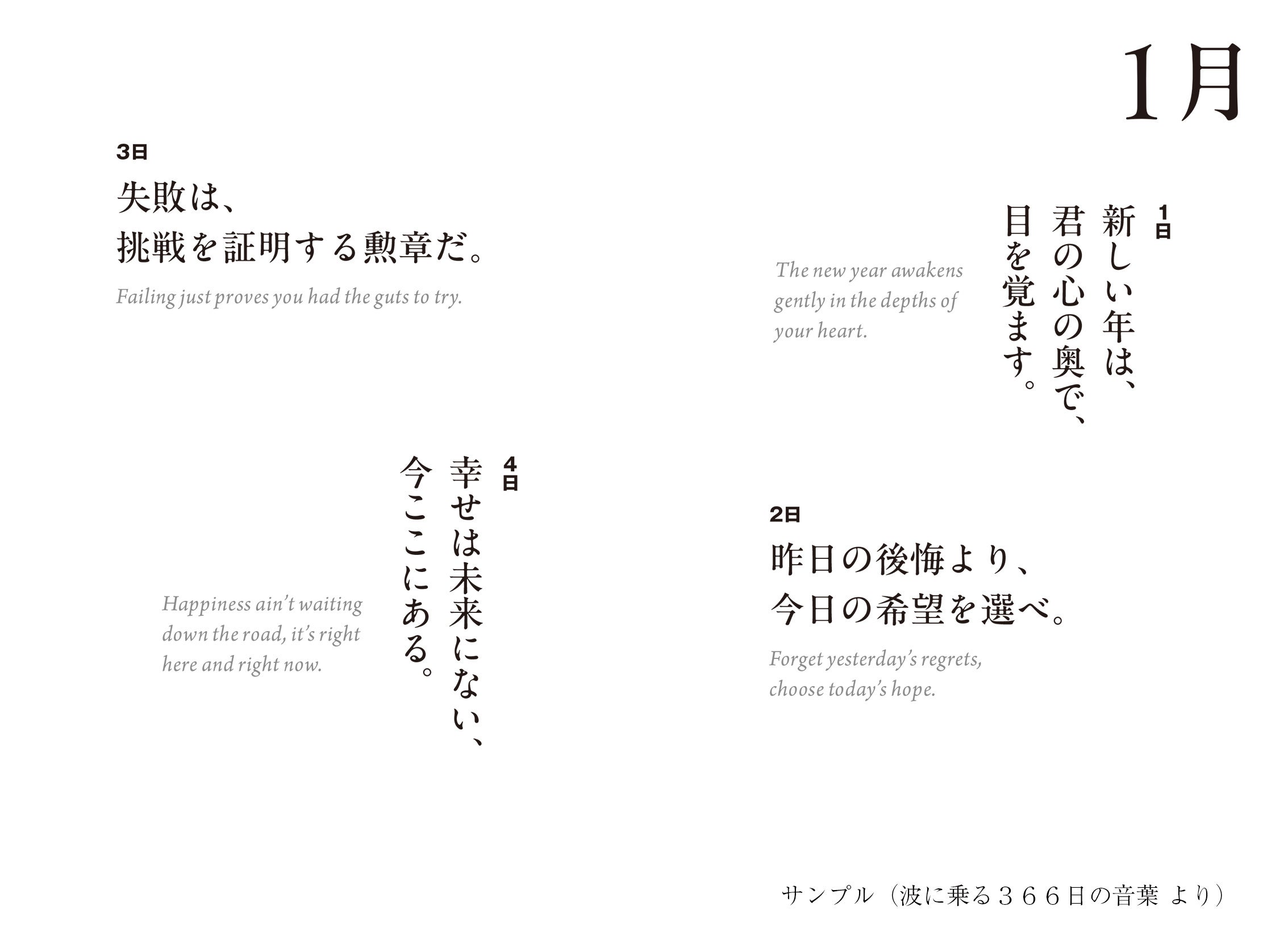 後半には、「365日+1日分の言葉」として、366日分の励ましの言葉を収録。