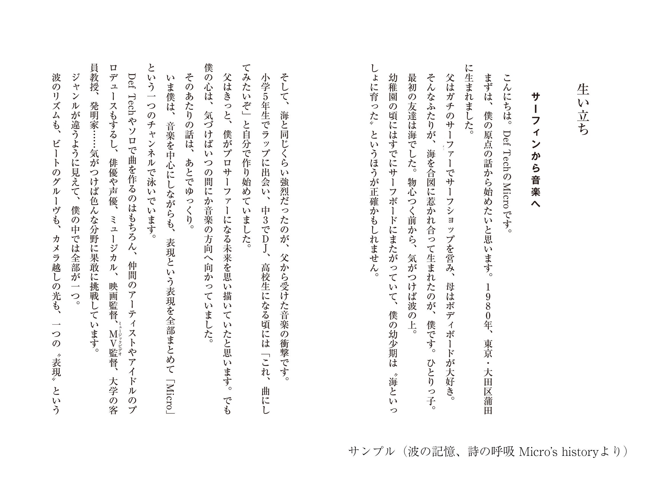 音楽家として活躍する現在のMicroと、一人の表現者として原点をつなぐ、象徴的なページとなっている。