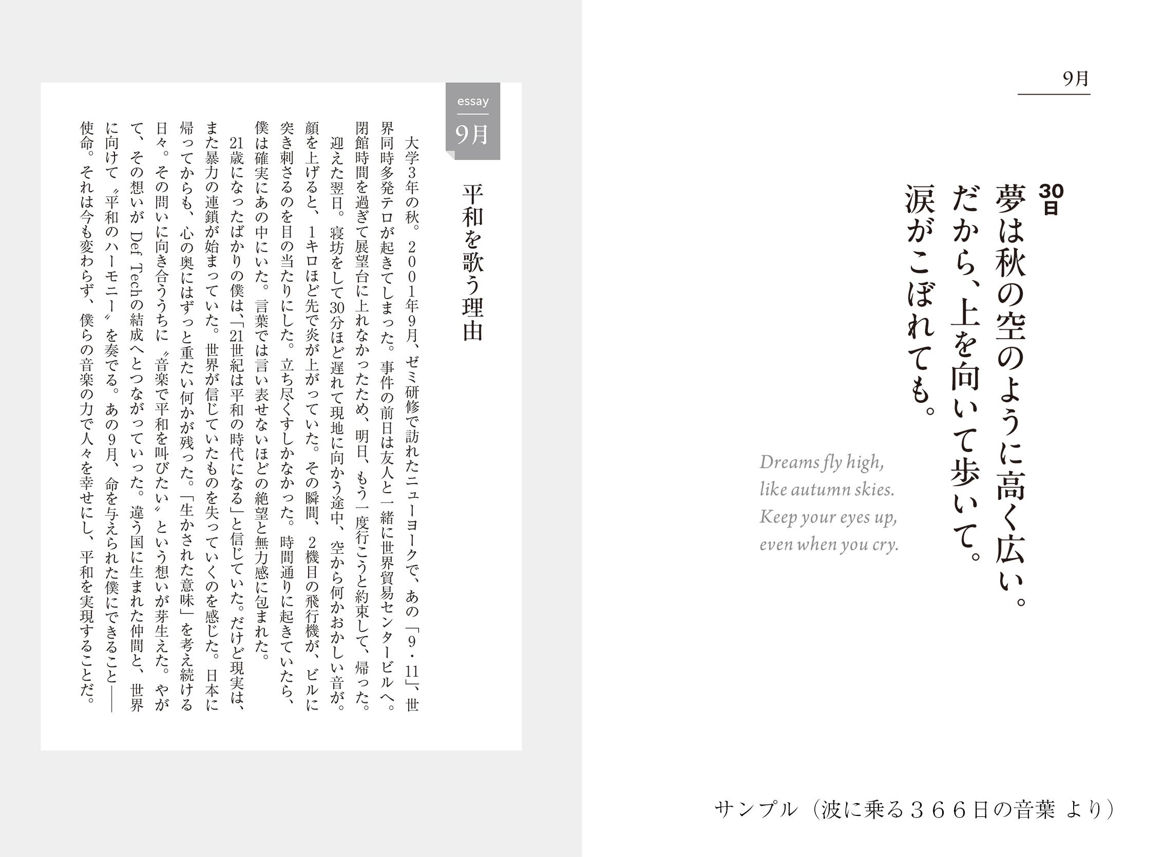 どのページから読んでもいい。忙しい朝、立ち止まりたい夜、ふと心が揺れた瞬間に、一行の言葉がそっと背中を押す――。“人生応援歌”を作り続けてきたMicroが、音楽とは異なる形で届ける、新しいエール集となっている。
