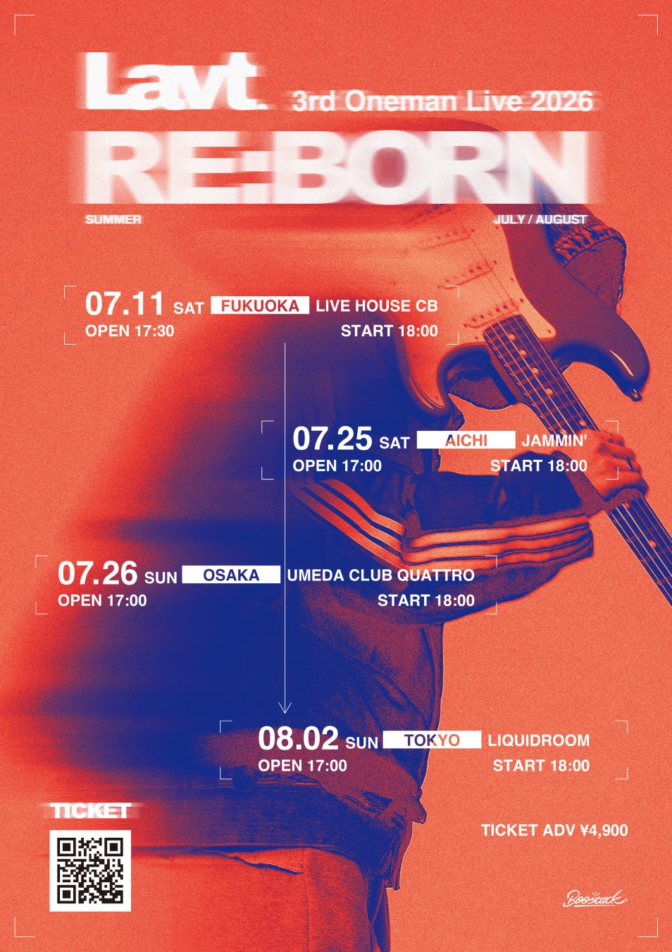 Spotify「RADAR: Early Noise 2025」への選出や夏フェス出演、自主企画スリーマンライブの開催、東阪ワンマンツアーの完売などを経て、活動の幅を少しずつ広げてきた中、今夏開催となるLavt 3rd ONEMAN LIVE「RE:BORN」の開催が発表された。