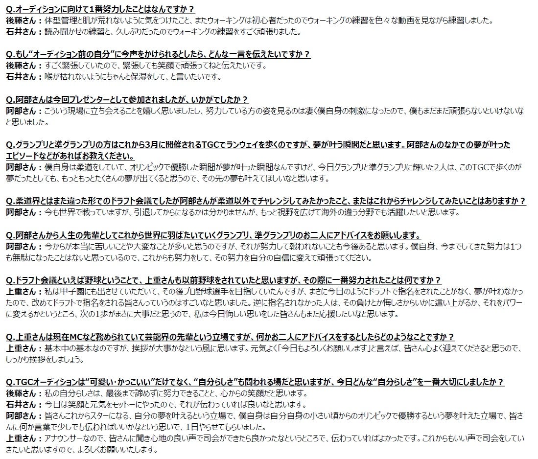 <質疑応答>阿部一二三、グランプリ後藤まな 、準グランプリ 石井仁菜、上重聡