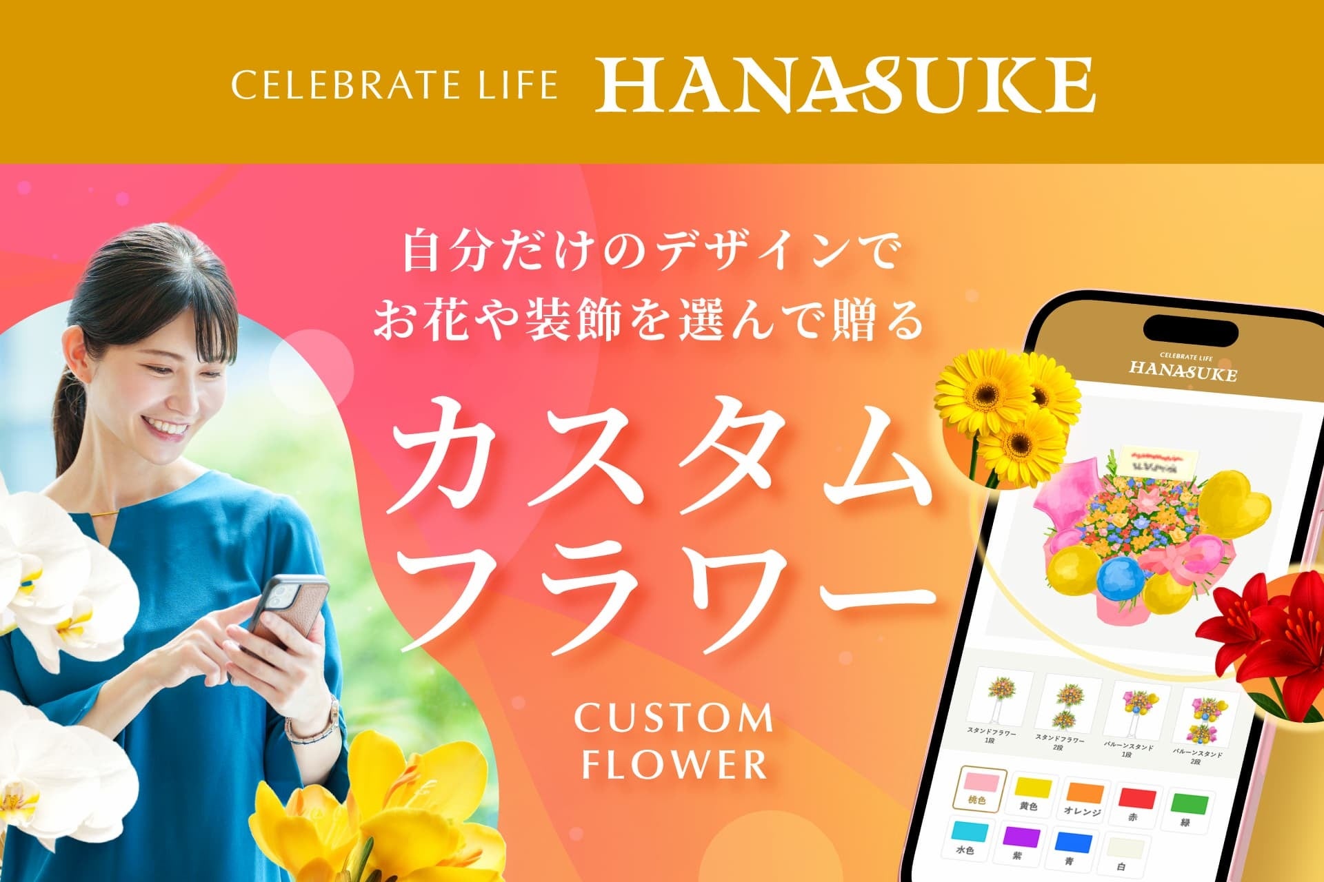 そしてこの度、さらなるお客様からの声にお応えし、より手軽に、そして多彩なシーンでご利用いただける「アレンジメント」と「バルーンアレンジメント」をカスタムラインナップに追加いたしました。