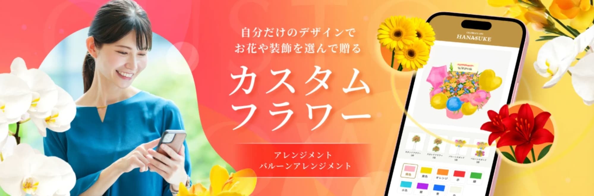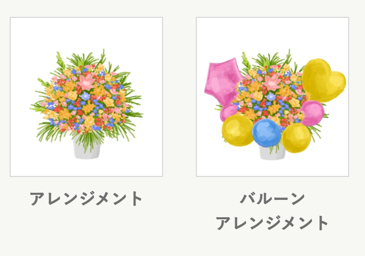 そしてこの度、さらなるお客様からの声にお応えし、より手軽に、そして多彩なシーンでご利用いただける「アレンジメント」と「バルーンアレンジメント」をカスタムラインナップに追加いたしました。