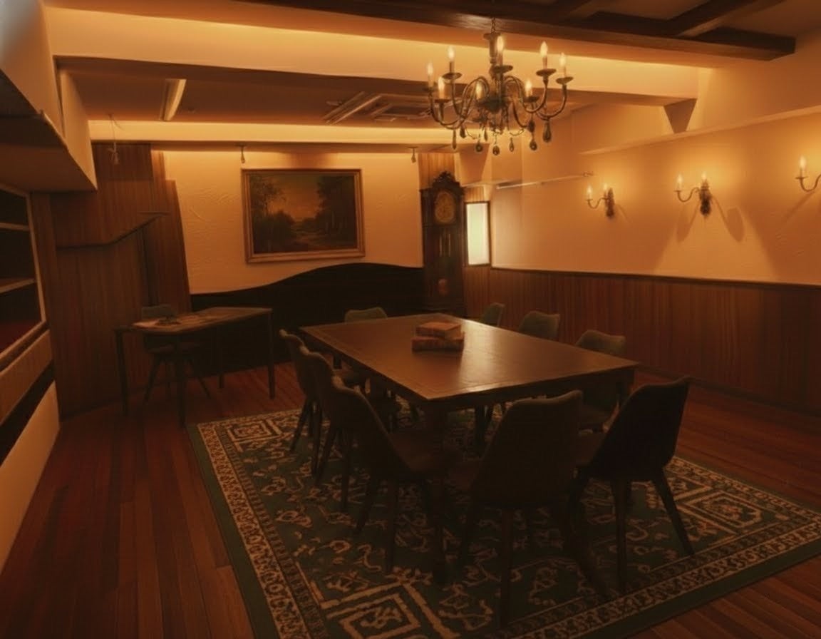 ゆったりとした広さを持つ空間で、落ち着いた雰囲気の中、マーダーミステリーを体験していただけます。ここでは、最高級の非日常に没入し、物語を終えた後、「デグチ」を通って日常へとお戻りいただきます。