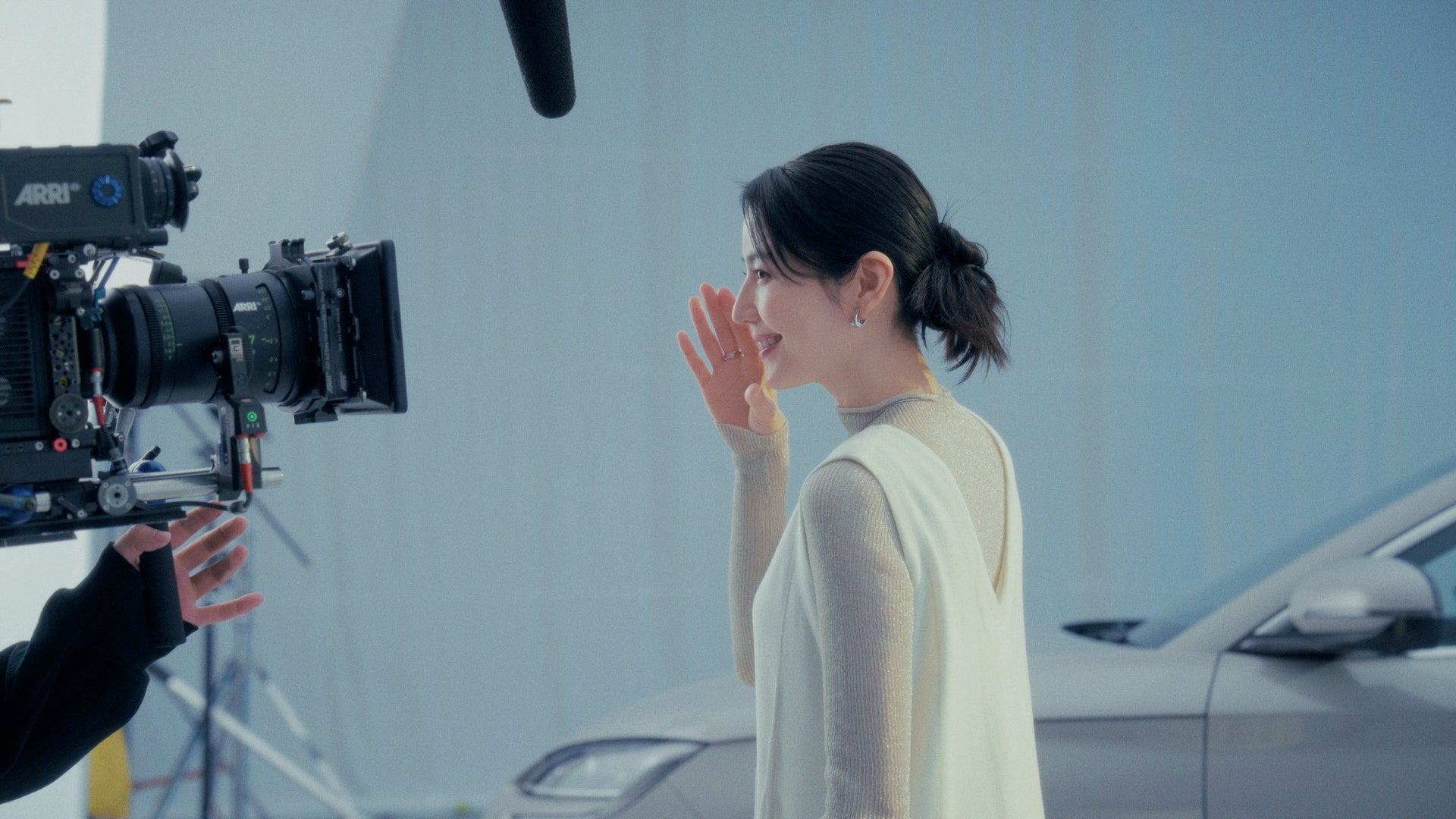 スタジオでは、車両に乗り込んでドライブシーンや「できるだけガソリンを使わない走り…!」とEV 走行を優先することで、優れた燃費とEVの快適性を両立したSUPER HYBRIDの性能に驚くリアクションも。最後は白色の上品なワンピース姿で前回CMの際にも撮影した「ありかも!」コメントがバージョンアップした「いよいよありかも、BYD!」と笑顔でコメントしました。終始和やかな雰囲気でスムーズに撮影することができました。
