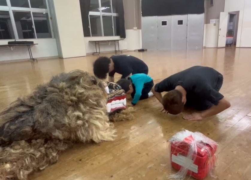 家族の愛が詰まった衣装と獅子頭で、あいとくんは憧れの「創作芸団レキオス」との共演という夢舞台に挑みました。