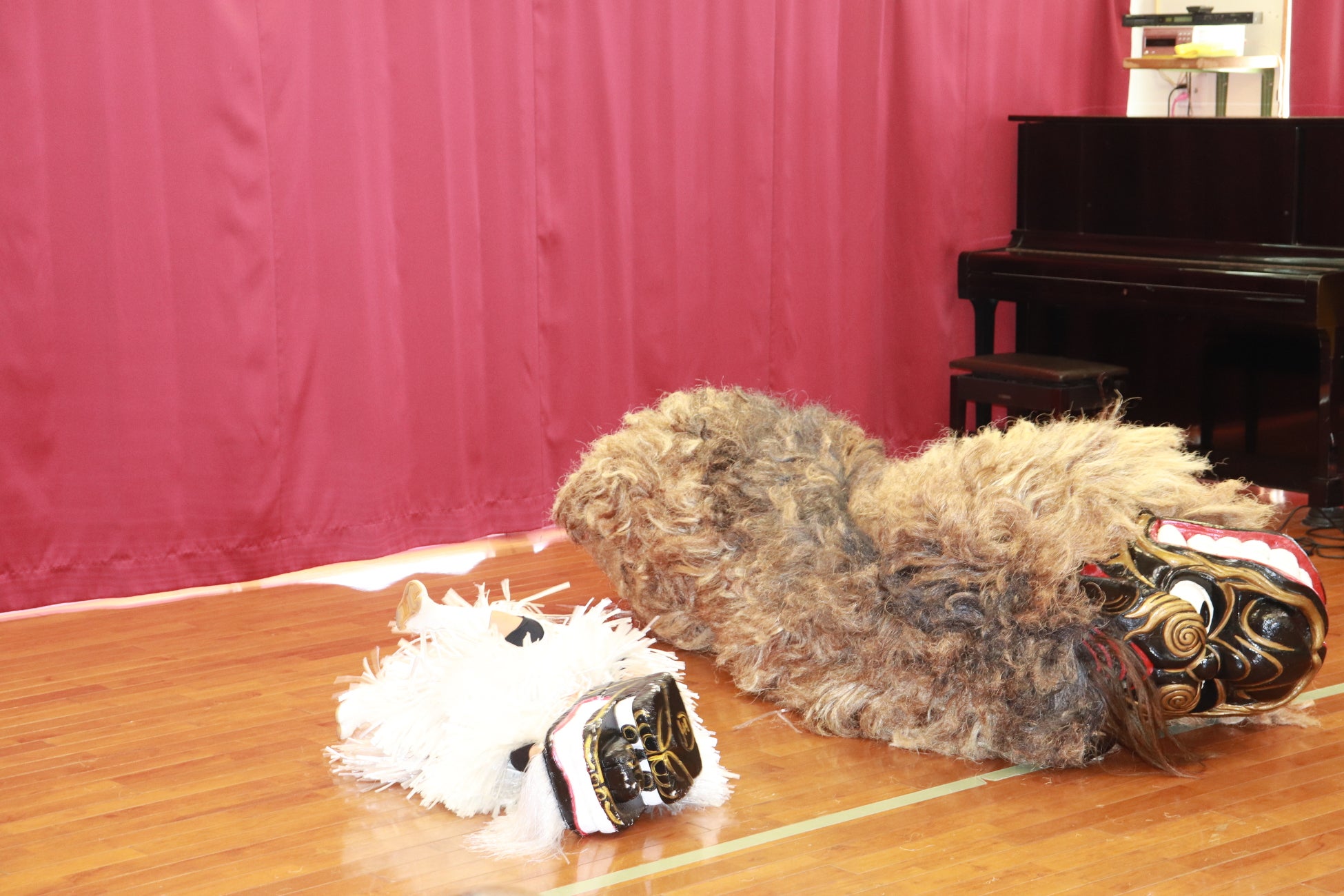 最初はお父さん手作りのダンボール製の獅子頭でしたが、激しい練習でボロボロになるたびに作り直され、現在は発泡スチロール製の獅子頭におばあちゃんが色付けした「3代目」を使用しています。