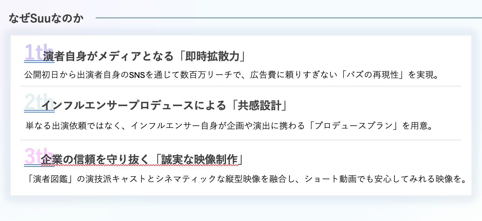 【株式会社Suu】ショートドラマ市場の急拡大を受け、縦型ショートドラマ制作事業へ本格参入。総フォロワー数500万人の「ショートドラマ演者図鑑」を基盤に、次世代の制作体制を構築。