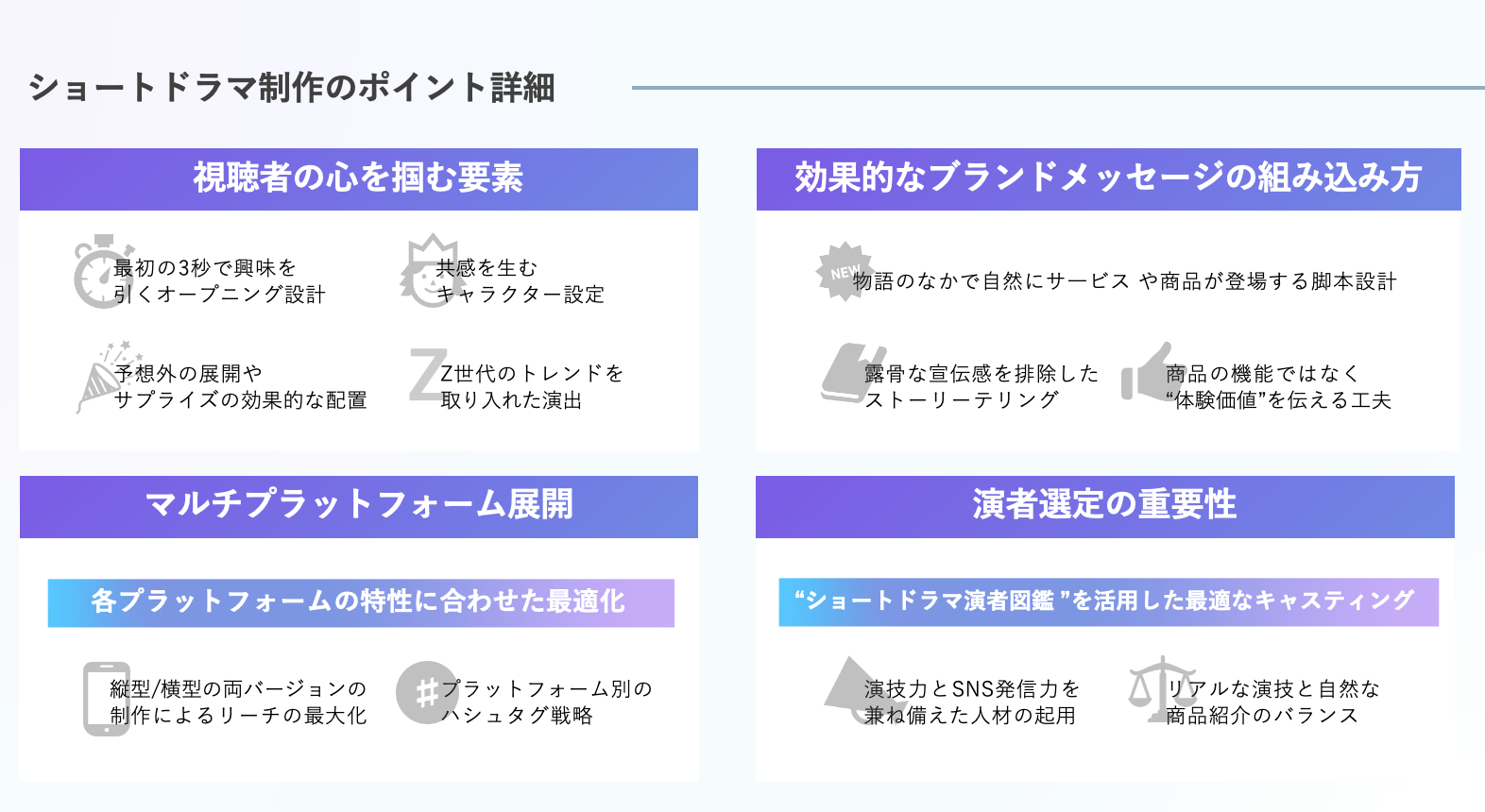 ショートドラマ制作パッケージ: 物語の力で「つい見てしまう」仕組みを作り、ブランドへの深い没入とファン化を促進します。