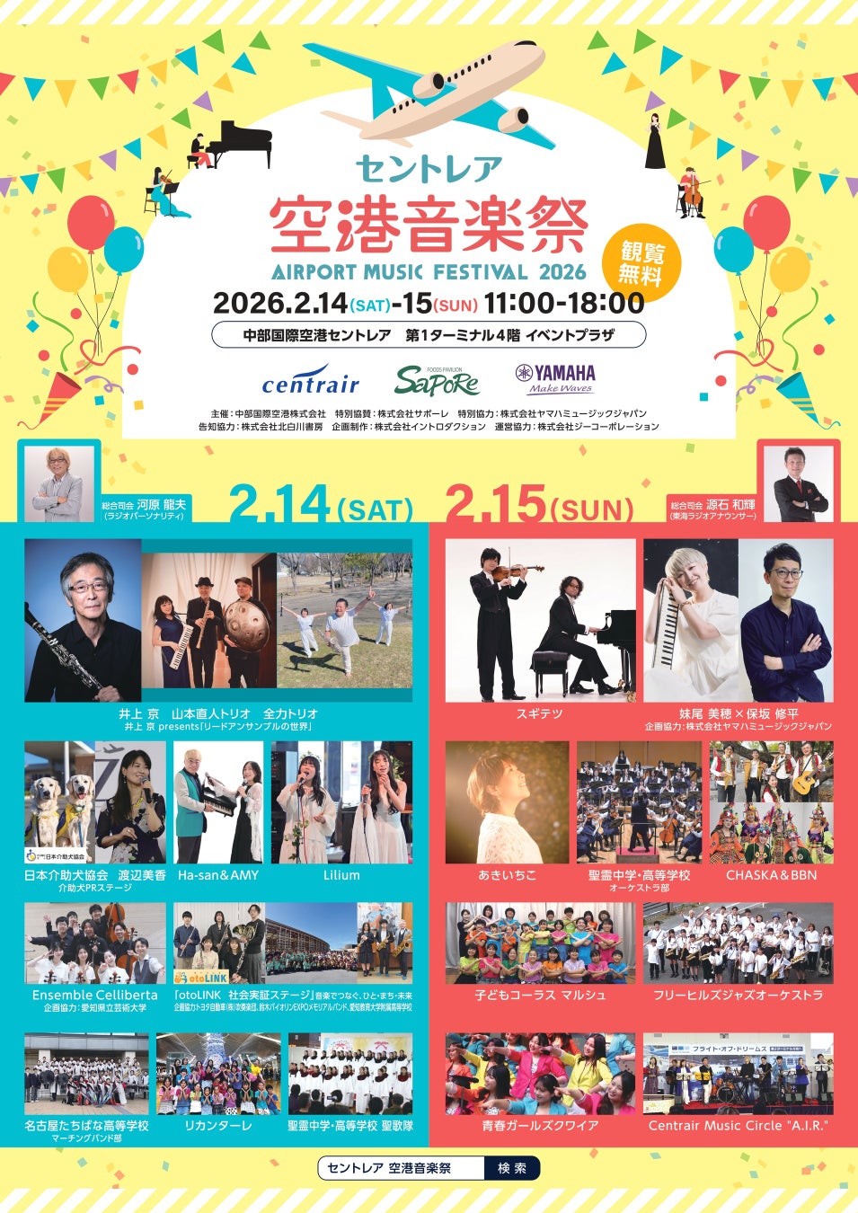 中部国際空港株式会社(所在:愛知県常滑市、代表:籠橋寛典)は、2026年2月14日(土)・15日(日)の2日間、第1ターミナル4階イベントプラザにて、プロ・アマ問わず中部地域で活躍するアーティストが出演するオールジャンルの音楽イベント「セントレア空港音楽祭2026」を開催いたします。