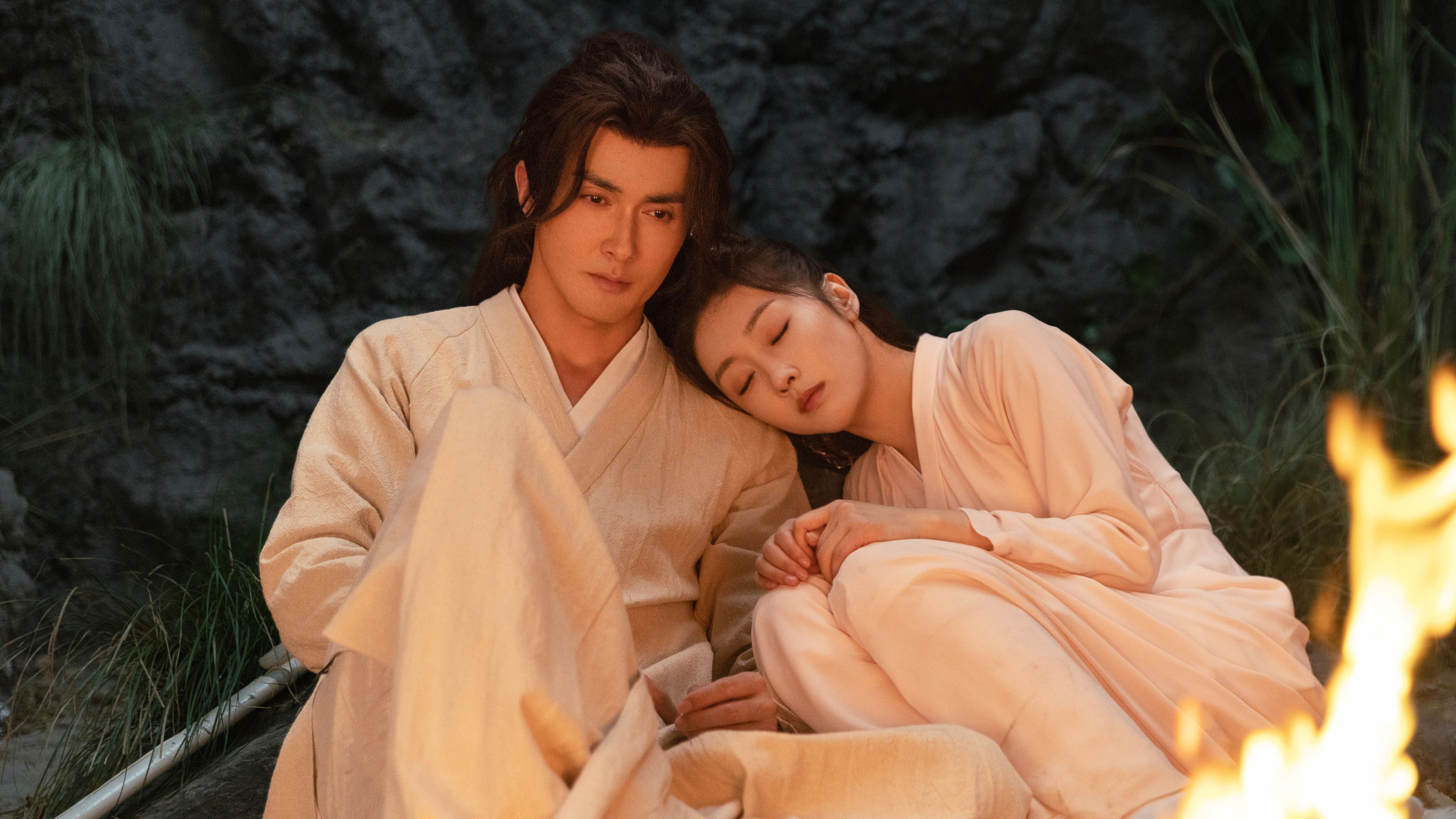 公開された第1話は、白馬に乗って颯爽と砂漠に現れた赤い衣の男・艶少(えんしょう)が、鬼谷盟(きこくめい)に捕らわれて死にかけていた御馳山荘(ぎょちさんそう)の養女・容疏狂(ようそきょう)を華麗なアクションで救い出すシーンで幕を開ける。 しかし意識を取り戻した容疏狂は状況が理解できない。 なぜなら彼女の中身は現代からタイムスリップしてきた方怡(ほうい)だったからだ。 様子のおかしい容疏狂を怪しむ艶少だったが、激しい砂嵐の中、必死に彼女を守り仙人(せんにん)泉にたどり着く。 容疏狂が眠っている間に、ひそかに彼女が侵された寒毒(かんどく)を自らの体に移す“引毒(いんどく)”を行う艶少。 果たして、艶少が己を犠牲にしてまで容疏狂を助けようとする理由とは?2人の運命と江湖に眠るお宝をめぐる争奪戦にワクワクが止まらない!!