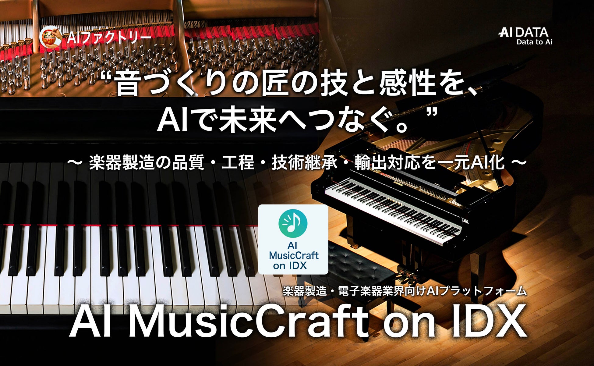 企業データとAIの利活用カンパニー、AIデータ株式会社(本社:東京都港区、代表取締役社長 佐々木隆仁、以下AIデータ社)は、アコースティック楽器、電子楽器、管弦打楽器などの製造業者・ブランド企業向けに、製造知識・品質情報・輸出証跡・ブランド資産を統合管理できるAIソリューション『AI MusicCraft on IDX』の提供を開始しました。