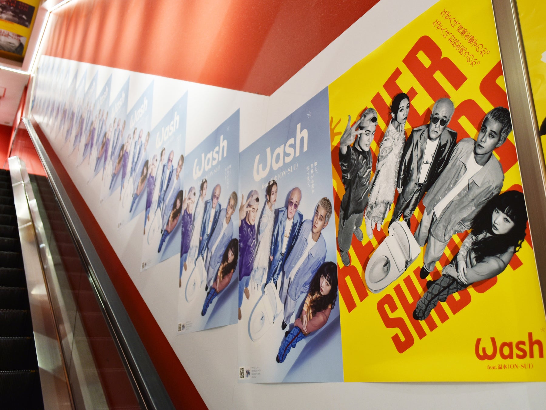 タワーレコード渋谷店のために制作した限定ポスター5種を、1階エントランス特設ブース周辺のほか、1-2階・3-4階のエスカレーター壁面(2月5日〜9日)、3・6・7・8階のトイレなど、店内全フロアに掲出。『Wash』メンバーが、音楽の聖地をジャックします。