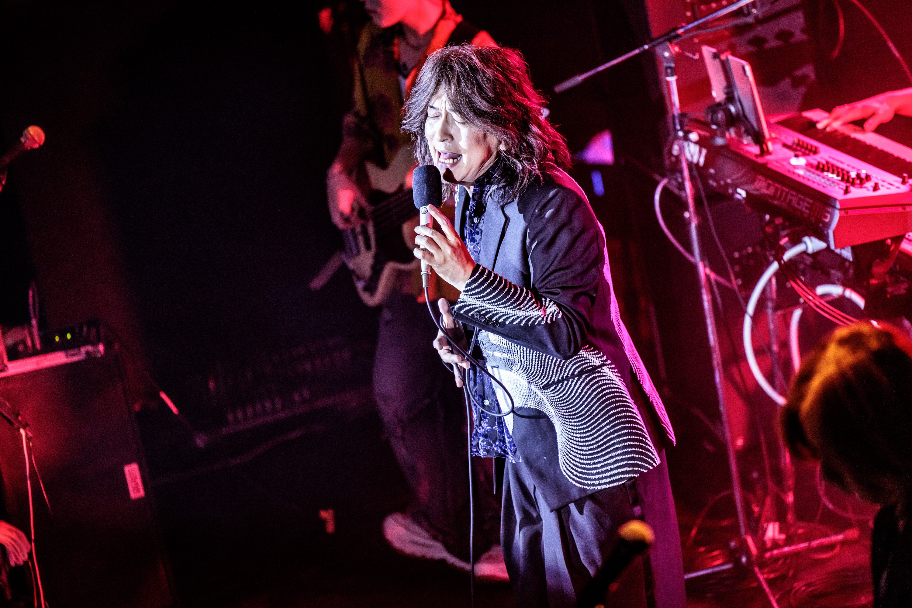 2026年1月29日、めでたく59歳を迎えた当日に行われた小野正利のバースデイ・ライヴ。タイトルに〈COUNT DOWN〉と銘打たれているが、これはつまり来たるデビュー35周年、そして還暦イヤーに向けての狼煙を上げるぞ、といった意味合いが含まれていて、めでたい気分と今後へのワクワク感の双方を味わってもらおうという制作者サイドの意図が読み取れる。ライヴのあおりVもまたカウントダウンをモチーフとしており、いまから59年前の〈1967.1.27〉の時報からスタートし、デビュー日をはじめとする小野にとってのメモリアル・デイを次々通過しながら、今日の日付でピタリと停止、そして小野がステージに颯爽と登場するというドラマティックな演出が施されていた。掴みはもうバッチリである。そして劇的な余韻を切り裂くように、アニメ〈HUNTER×HUNTER〉のオープニング・テーマ“departure!”のイントロがめっぽうラウドに鳴り響く。曲が始まるや否や、いきなりすさまじい威力を発揮する天井を突き破りそうなほどのハイトーン・ヴォイス。のっけからぜんぜん遠慮がないというか、出し惜しみという文字はわが辞書に存在しない、と言わんばかりにフルスロットル状態でライヴに突入していく小野。そう、まさに期待通りのオープニングがそこに展開したのである。
