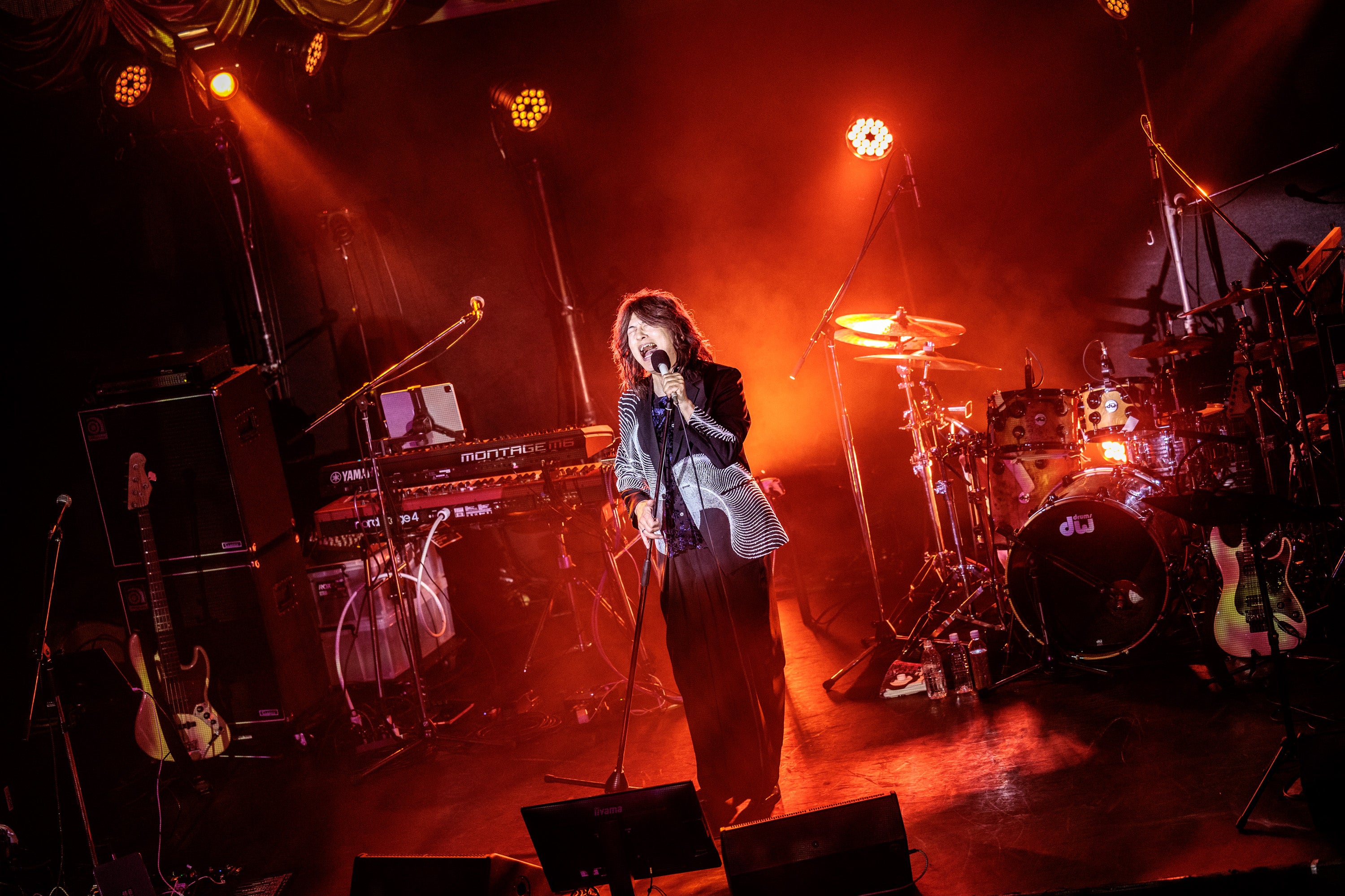 アンコールの1曲目に歌われたのは、ジャジー・バラード「Starry night」。ドリーミーなサウンドがレトロな会場の空気と甘く溶け合い、会場全体をロマンティックに彩ってくれた。それにしても「夏と冬」といい、「追想の時」といい、小野正利というヴォーカリストは、季節の表情を自在に映し出すというか、四季の移ろいを巧みに描き分ける歌声の持ち主だなぁ、という印象を改めて認識させられることとなったこのライヴ。「毎年同じことを言っておりますが、誕生日ライヴをやるよって言ったらこれだけの人が集まってくれる。もうすぐ雪が降ってくるかもしれないという天候なのにお越しいただいて、本当にありがとうございます。私なりに精いっぱい歌えたと思っております」という最後のMCに続いて披露されたのが、〈週末のワルキューレⅡ〉のエンディング・テーマ「祈」。圧巻のロング・トーンがまたしても天井を突き抜けて冬の夜空に突き刺さるのがハッキリと見えた。