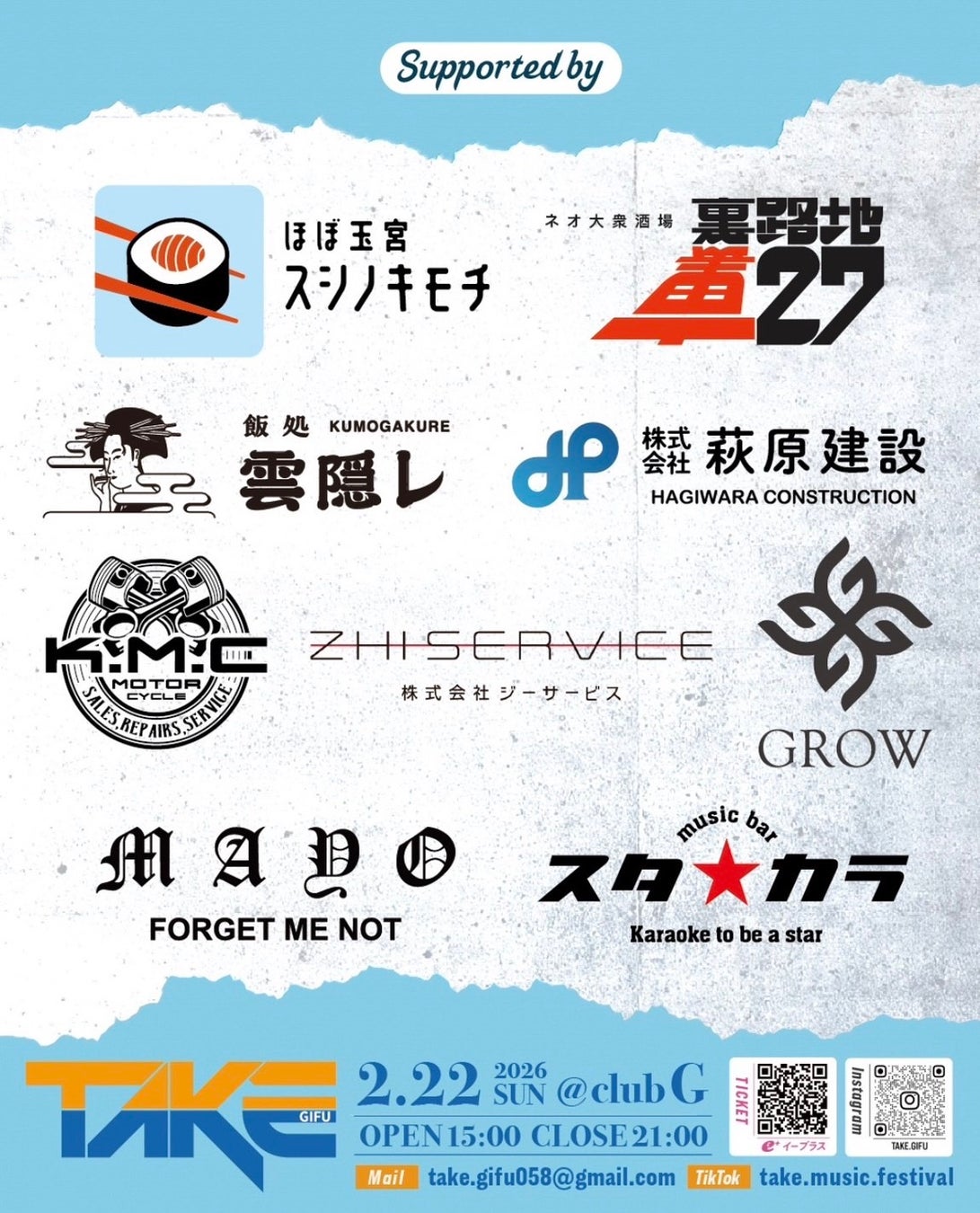 当社スシノキモチは、TAKE MUSIC FESTIVAL Vol.1の協賛と通じて、
