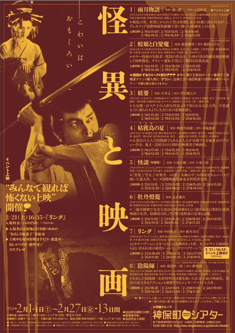 2月14日(土) からは、怪談や言い伝えなどをもとにした怪異映画の特集上映です。