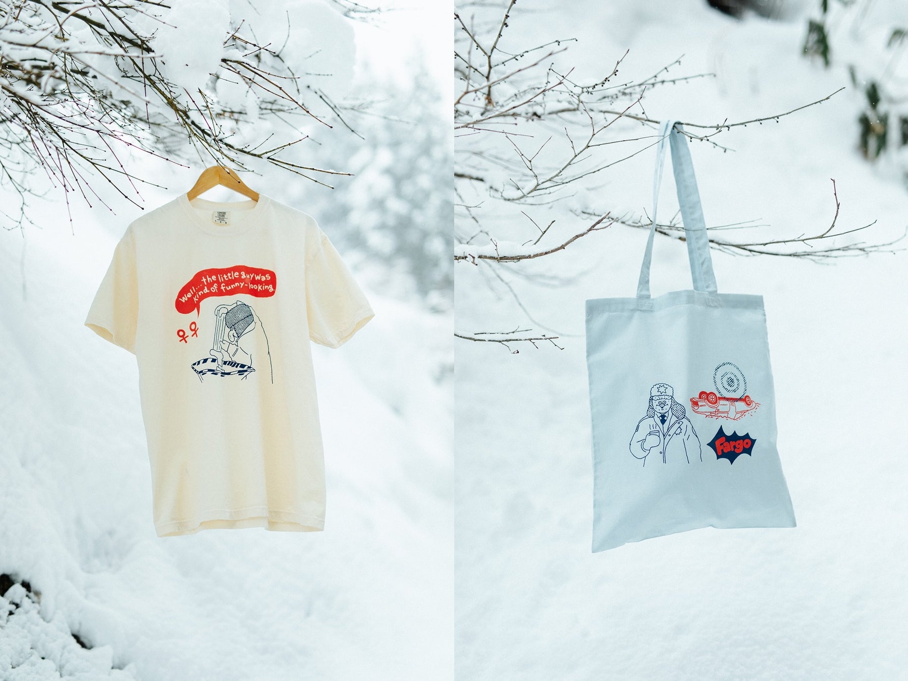 イラストレーターのmegumi yamazakiさんによる『ファーゴ』をイメージして描き下ろされたイラストのTシャツ、トートバッグを、応募者の中から抽選で合計10名様にプレゼントいたします。詳細は下記ページをご覧ください。