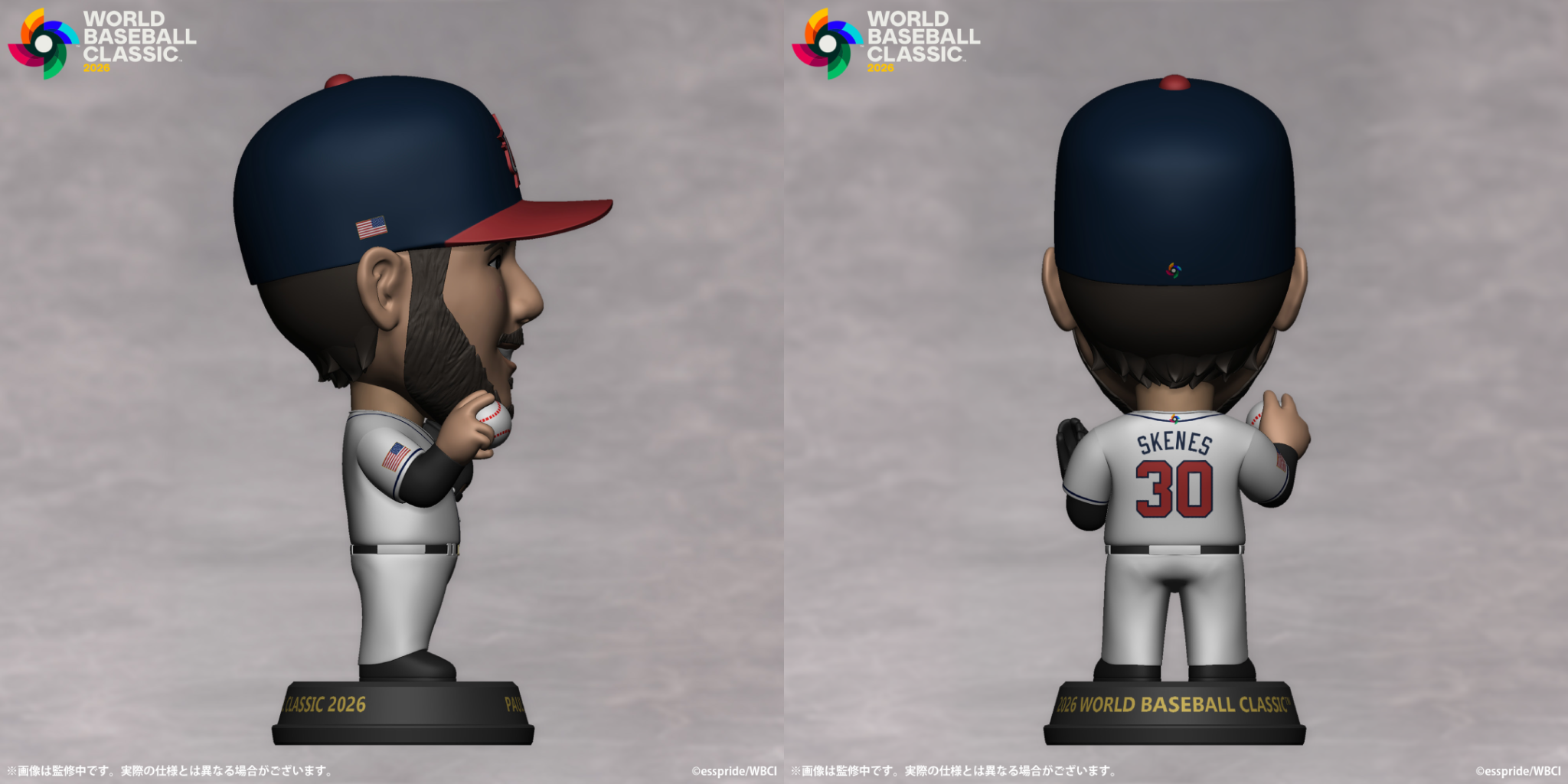 esspride株式会社(所在地:東京都渋⾕区、代表取締役CEO:⻄川世⼀) は、2026 WORLD BASEBALL CLASSIC™の開催を記念して、「2026 World Baseball Classic™公式プレミアムデフォルメフィギュア」を完全受注生産にて発売することを決定いたしました。