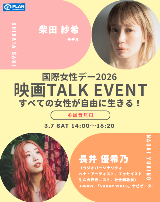 国際NGOプラン・インターナショナル(所在地:東京都世田谷区 理事長:池上清子 以下、プラン)は、国際女性デーの前日となる 3月7日(土)、「すべての女性が自由に生きる!」をテーマに、映画上映&トークイベントを開催します。