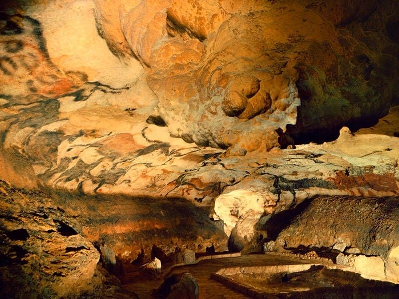 オーリニャック文化の洞窟壁画で有名なラスコー洞窟は、1979年にユネスコの世界遺産に登録されました。内部には馬や山羊や人間の壁画が描かれており、これらは20,000年前のクロマニョン人の手によるものです。