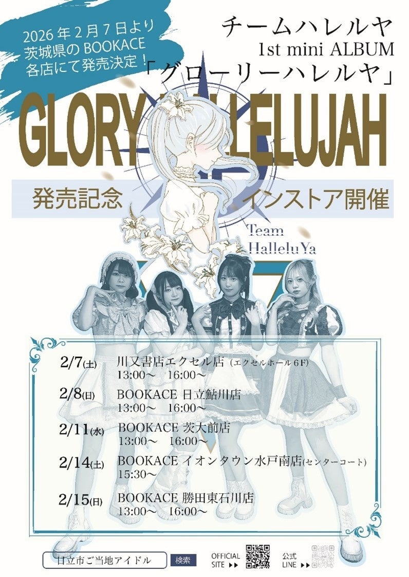 「チームハレルヤ」のファーストミニアルバム『グローリーハレルヤ』の発売を記念したインストアイベントを2月7日(土)よりブックエース各店舗で実施いたします。