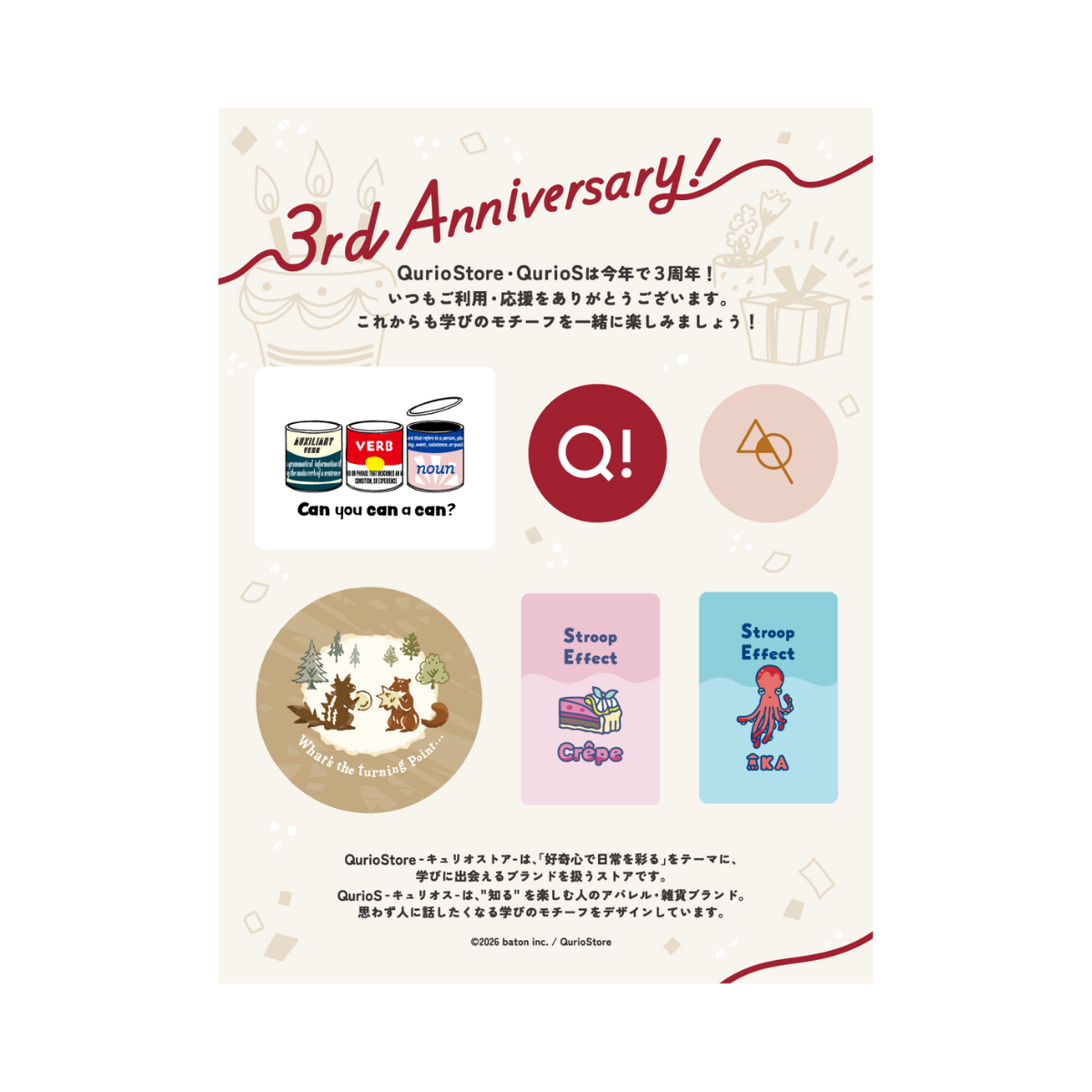 3周年を迎えたQurioStore・QurioSはこれからも、アイテムを通じてお客様と一緒に学びを楽しめるよう取り組んでまいります。
