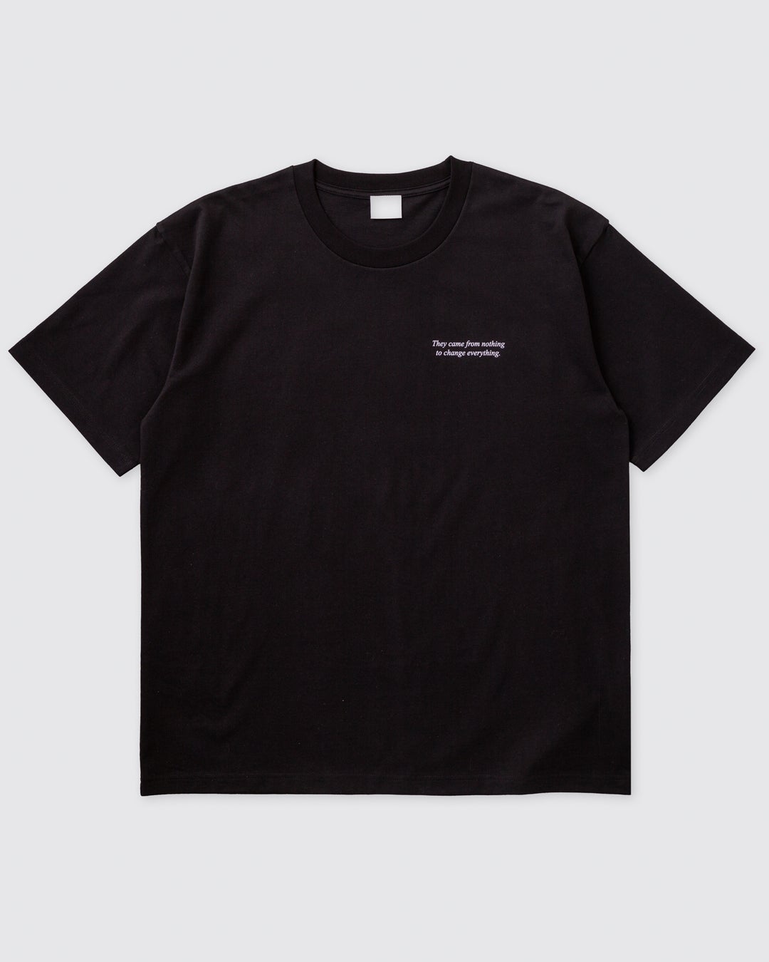 ボディ・生地はロゴTと同じものを採用し、フロントには、当時の映画公開時のコピー “They came from nothing to change everything.” のタイポグラフィをシルクスクリーンプリントで表現。バックには、夜のダウンヒルシーンの幻想的な街並みがボディに溶け込むよう、Tシャツの生地色を活かしたブラックマジックのインクジェットプリントを施しました。