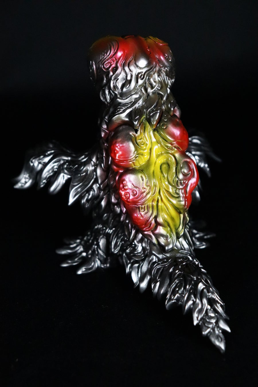 背面も、ヘドラの特徴であるコブ状の造型に、イササ氏の意匠が組み込まれています。