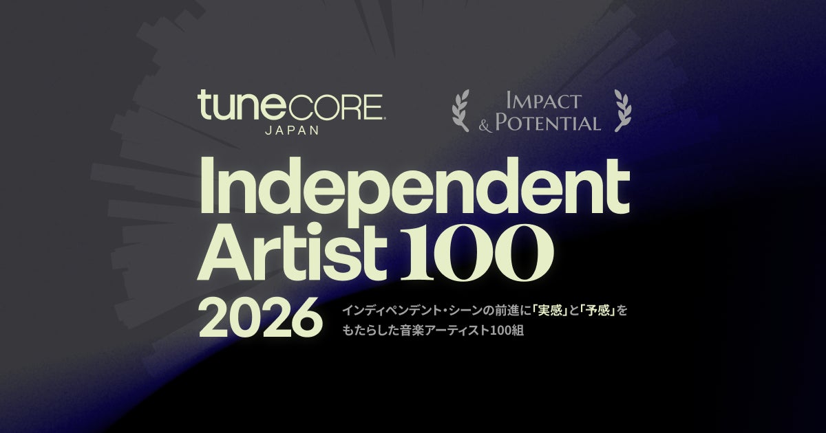 インディペンデントアーティストのための音楽デジタルディストリビューションサービス「TuneCore Japan」(運営:チューンコアジャパン株式会社、東京都渋谷区、代表取締役社長:野田威一郎、以下 TuneCore Japan)は、新たに未来のカルチャーへ繋ぐプロジェクト、「TuneCore Japan INDEPENDENT ARTIST 100 – 2026」を発足。